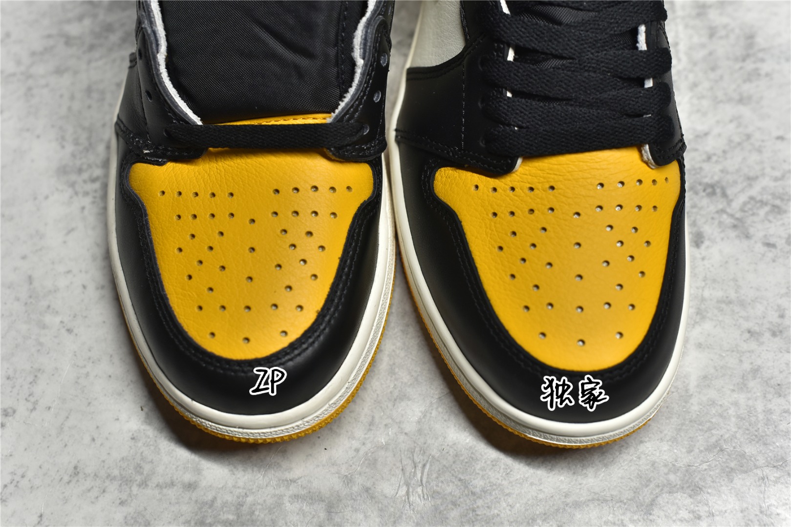 ?? Comparative identification: Air Jordan 1 Retro High OG AJ1 Joe 1 Black and yellow toes