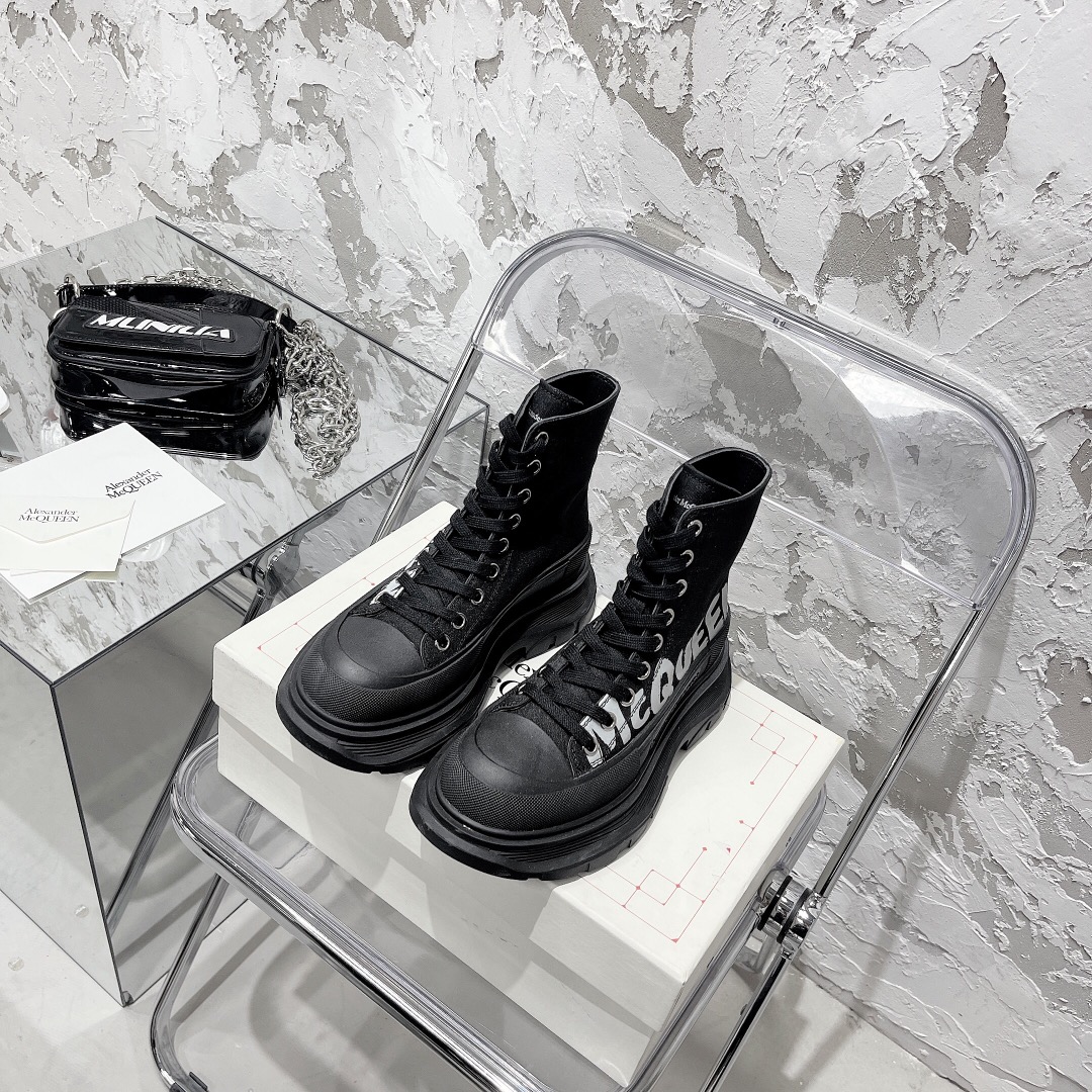 Alexander McQueen 's latest Logo glow-in-the-dark graffiti new thick soles canvas couple shoes ?? The latest glow-in-the-dark graffiti from this series has been all over the Internet for a long time. It 's more individualistic ?? The upper of the shoe is made of the original Mexican custom-made Space Monica cloth with a warm and lustrous color. The inner pads are made of Italian imported hybrid sheepskin. Extremely flexible! The round toe design allows the toes to be fully released, getting rid of the original oppressive feeling of the shoes! The outsole adopts the original molded TPU outsole. Super wear-resistant, with a complex combination process of several layers of outsoles. Confirm my original development pattern, COLOR EXCLUSIVE real shot ? ? ?? Full original package plus a pair of shoelaces ?? SIZE female 40 custom no return, no exchange ?? SIZE men 45 custom no return, no exchange