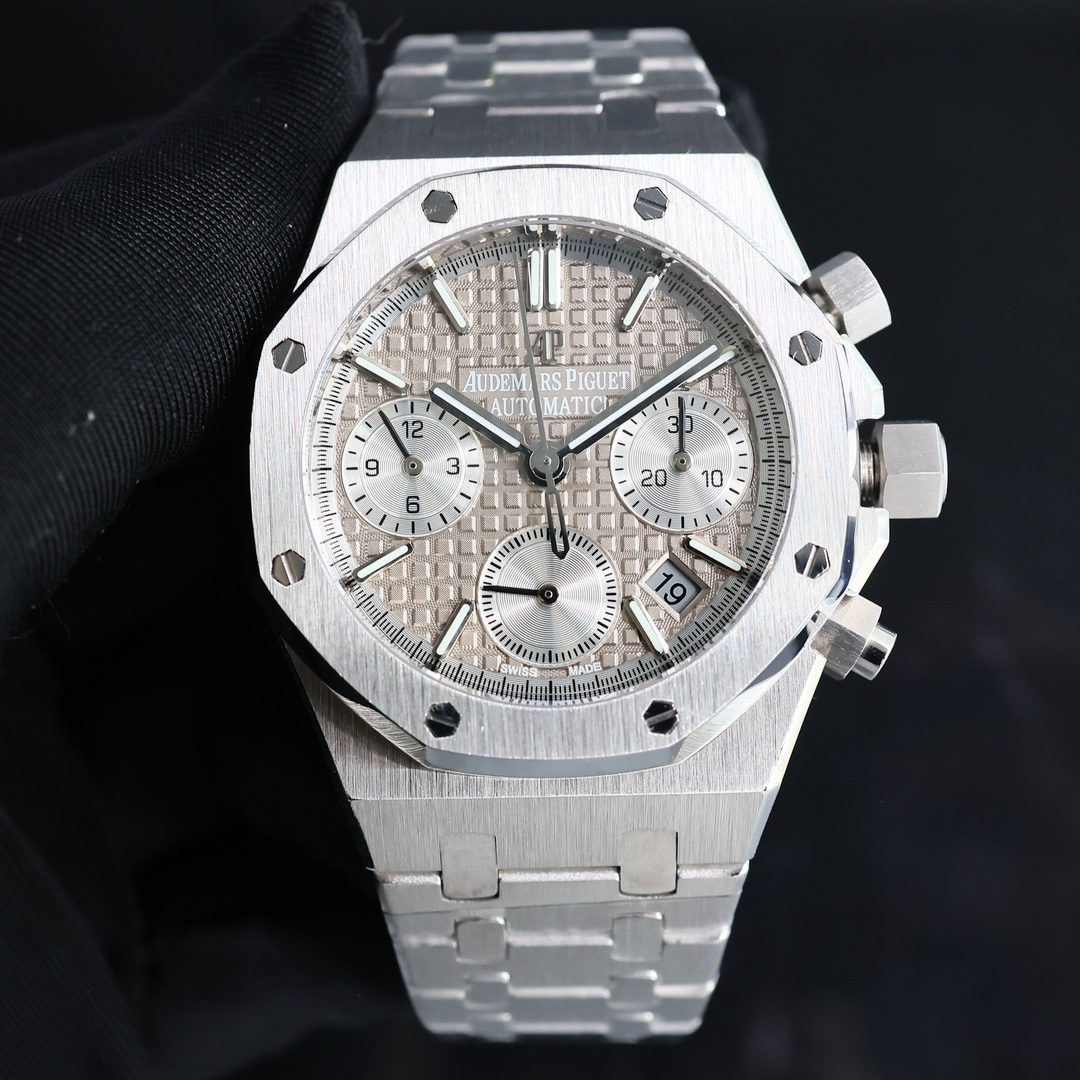 Popular Audemars piguet The CURRENT HIGHEST mechanical movement version ?? GENUINE IS mechanical! Machinery! Don't waste money on buying a quartz! AP Royal Oak Chronograph Series watches, genuine 1:1 original replicas. All dials are meticulously crafted and developed based on the original genuine dial templates, outshining the market's high-fidelity imitations. Welcome everyone to come and identify them. At present, genuine watches are hard to come by in one of the popular markets both at home and abroad. The second-hand market price has risen to 500,000 yuan, which is quite a good value for preservation and appreciation. If you can buy one, you will make a profit. Each watch face is of the original genuine and substitute level. It took a full one year and three months from the development to the color, to ensure that everyone can buy the most cost-effective watch model with the least money The case material of the watch is imported 316 stainless steel, with ultra-fine grinding and brushing process, and meticulous attention to detail! The dead corners are hand-brushed, and the hardware accessories at all positions are polished to maintain the original consistency. The technical breakthroughs have been made to ensure that the shells can be interchanged with genuine products. Each dial is an original substitute grade dial, which cannot be compared with the high-quality counterfeits on the market. The most precious part is that the original molded lettering pins and hands are integral-molded, truly restoring the effect of the genuine product. Unlike the market, it has two layers and no luster! It is equipped with the 7750 movement, ensuring accurate and stable timekeeping