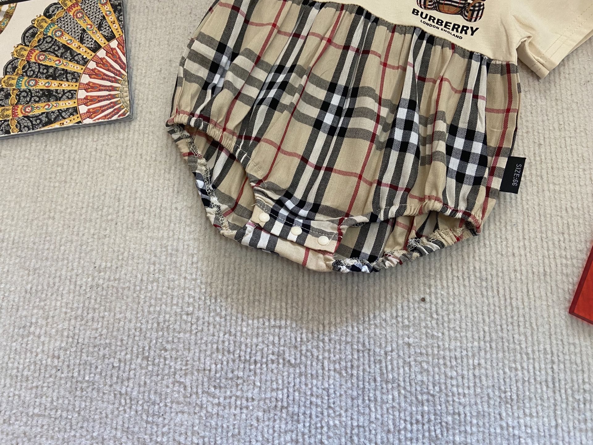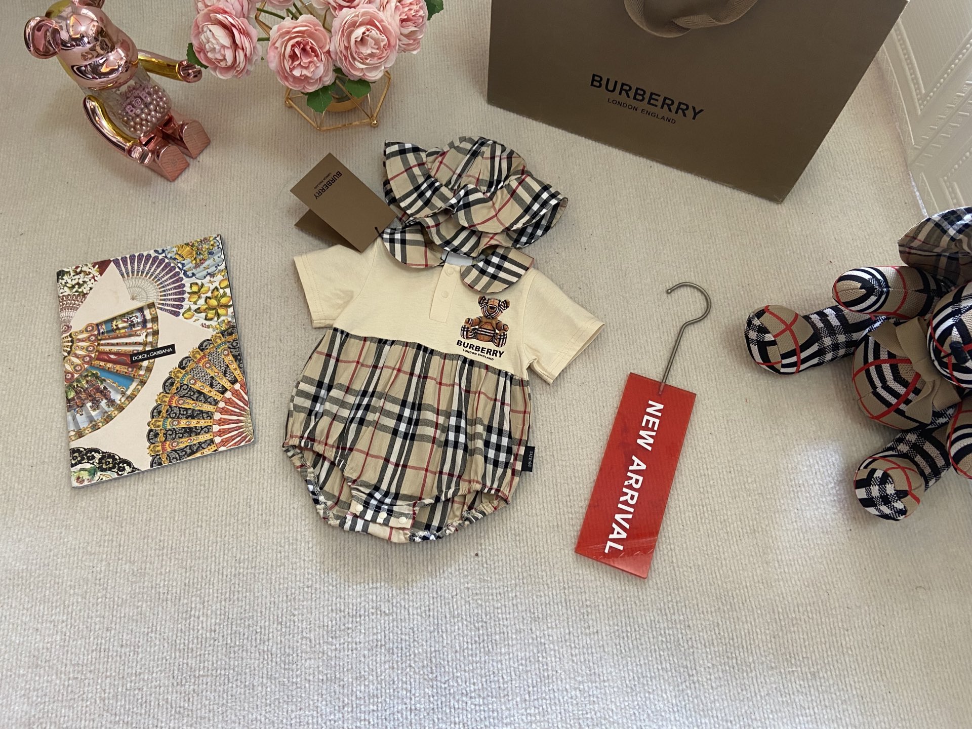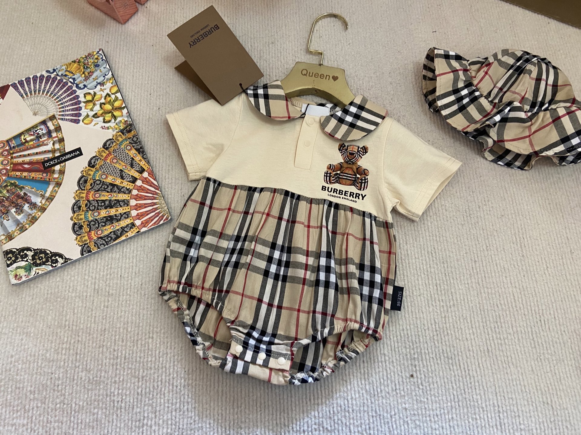 Book for one week! Burberry, high-end children's wear, boys' and girls' harem sets, short-sleeved bag bottoms + hats, pure cotton fabric, comfortable and good-looking to wear, size :66-73-80-90-100cm