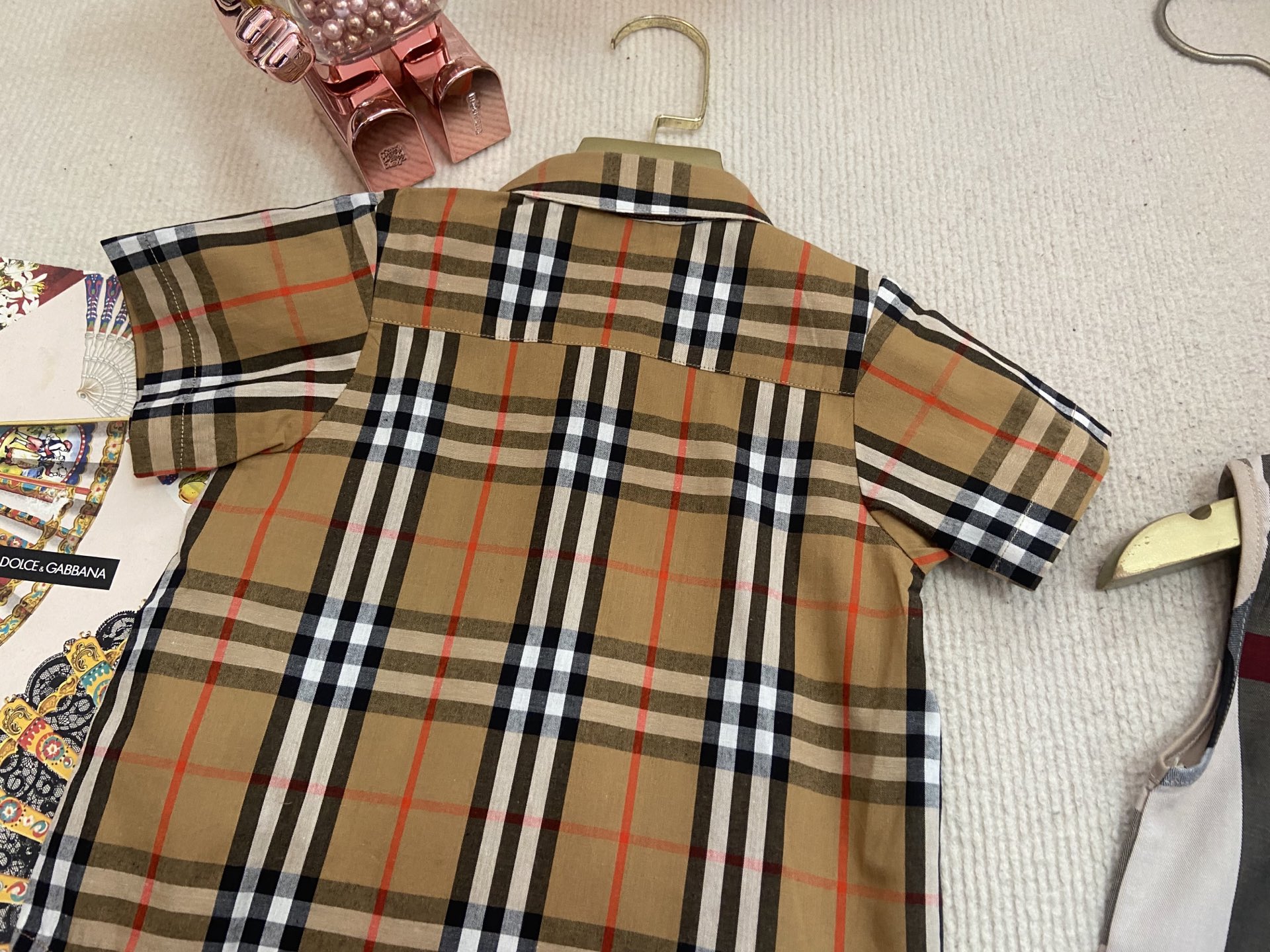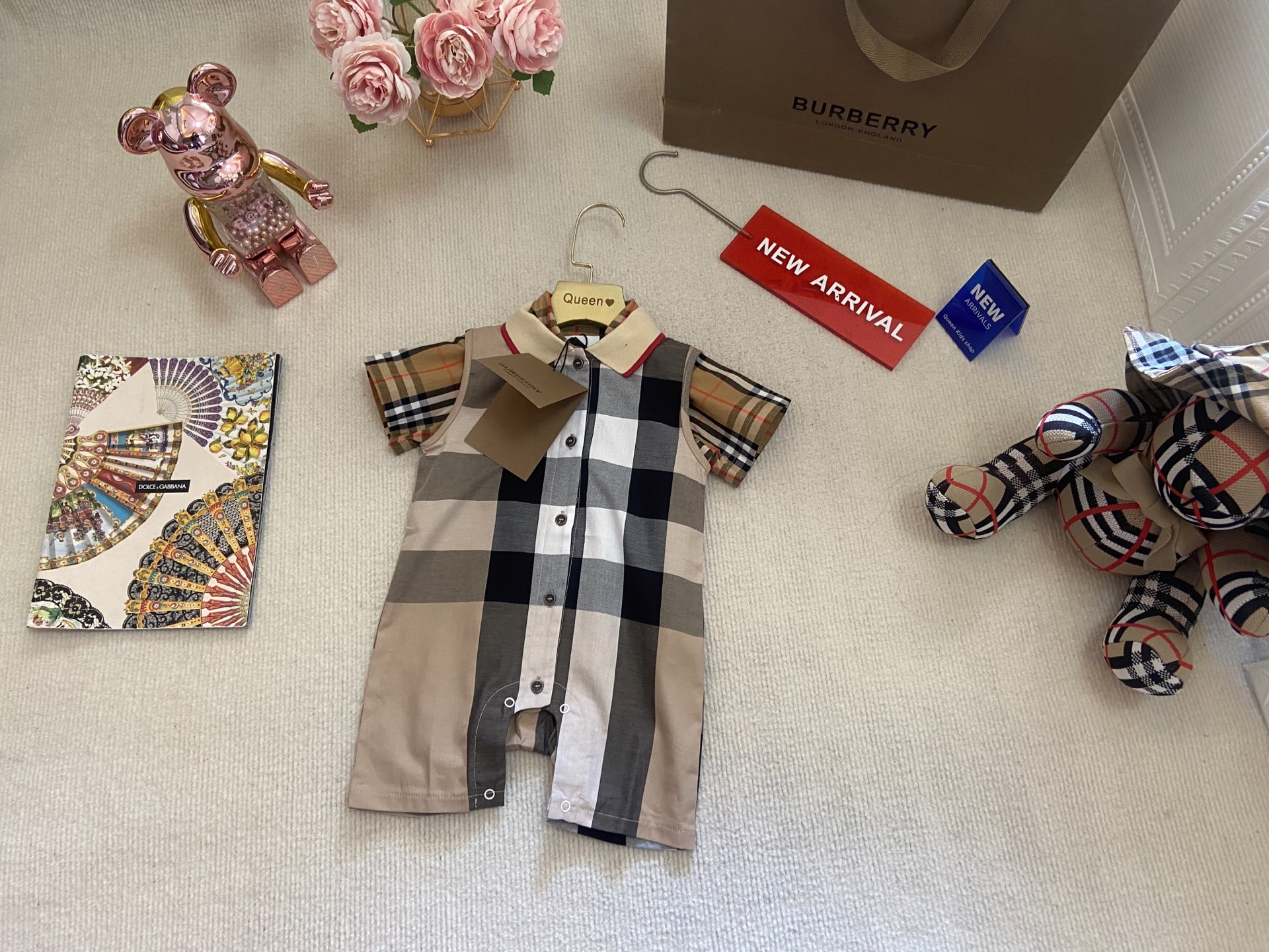 Book for one week! Burberry, a high-end children's wear set for boys and girls, is a two-piece set: a checked shirt and a vest jumpsuit. Made of pure cotton woven fabric, it is comfortable and good-looking to wear. Size: 59-66-73-80-90cm
