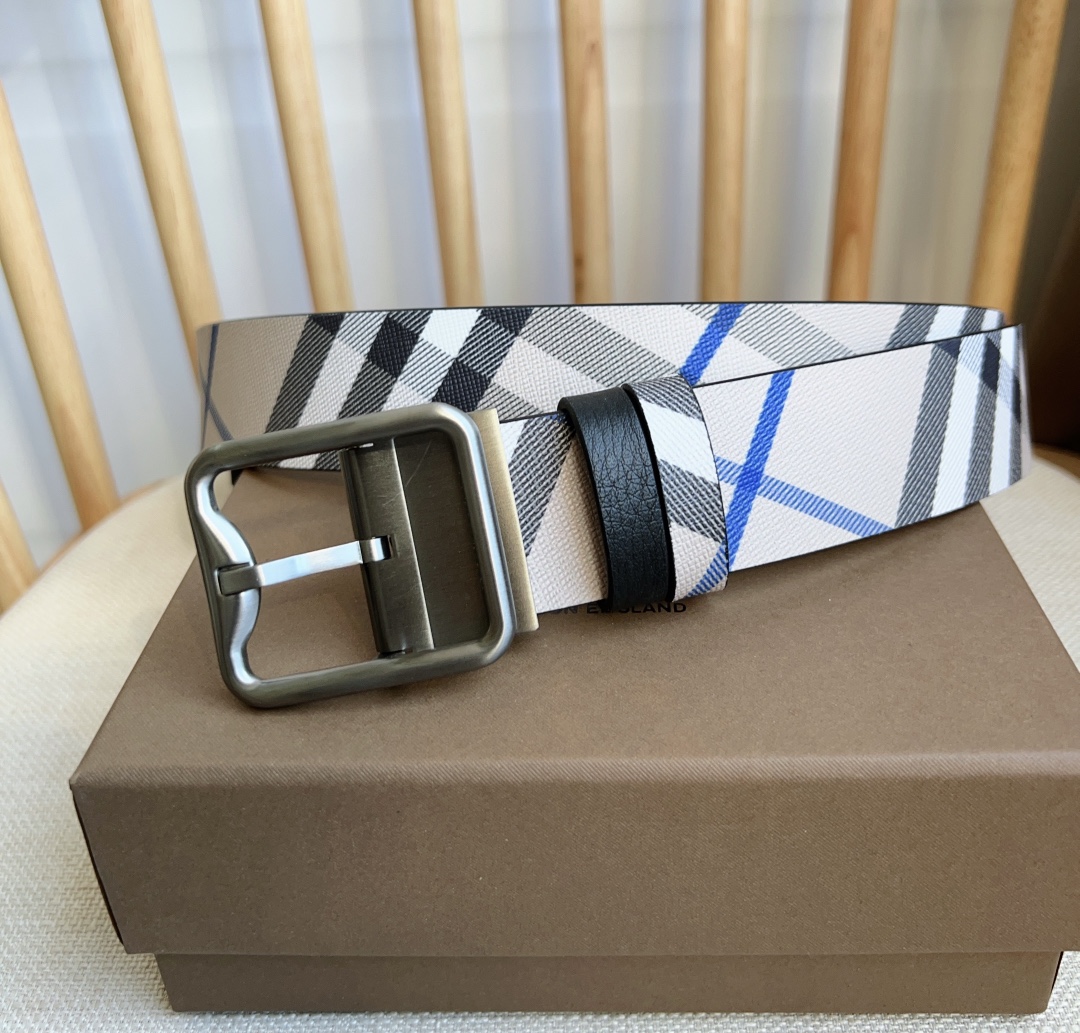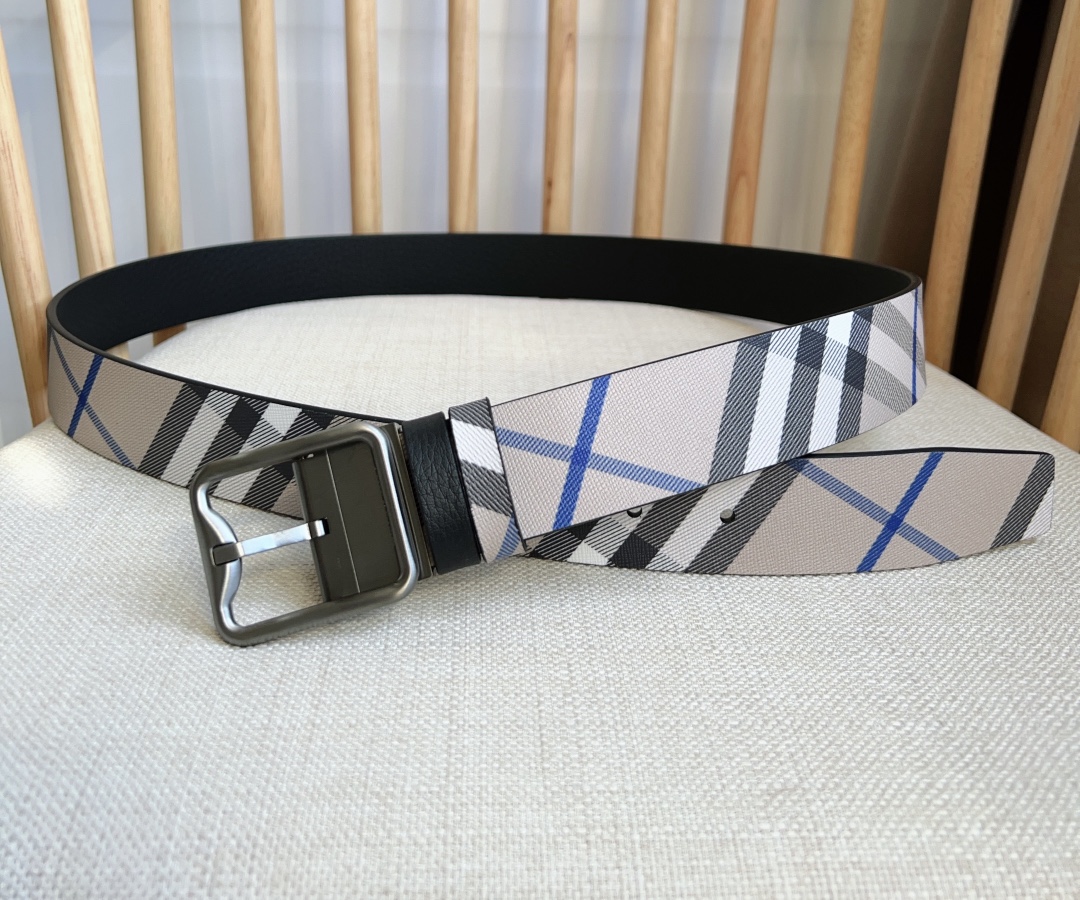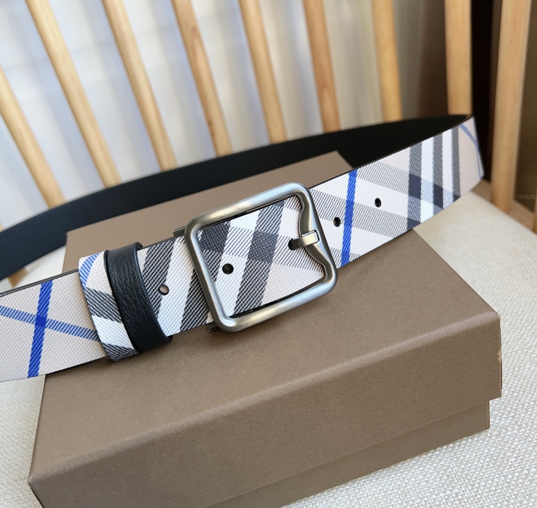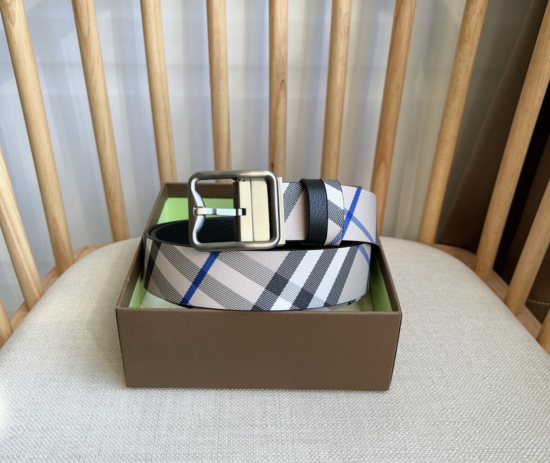 Burberry store at the same time NEW ???? double-sided two-use belt MADE in Italian workshop with palladium-plated B-shaped buckle, one side decorated with Burberry check and the other side with grain calfskin material belt width :3.5cm elegant and simple