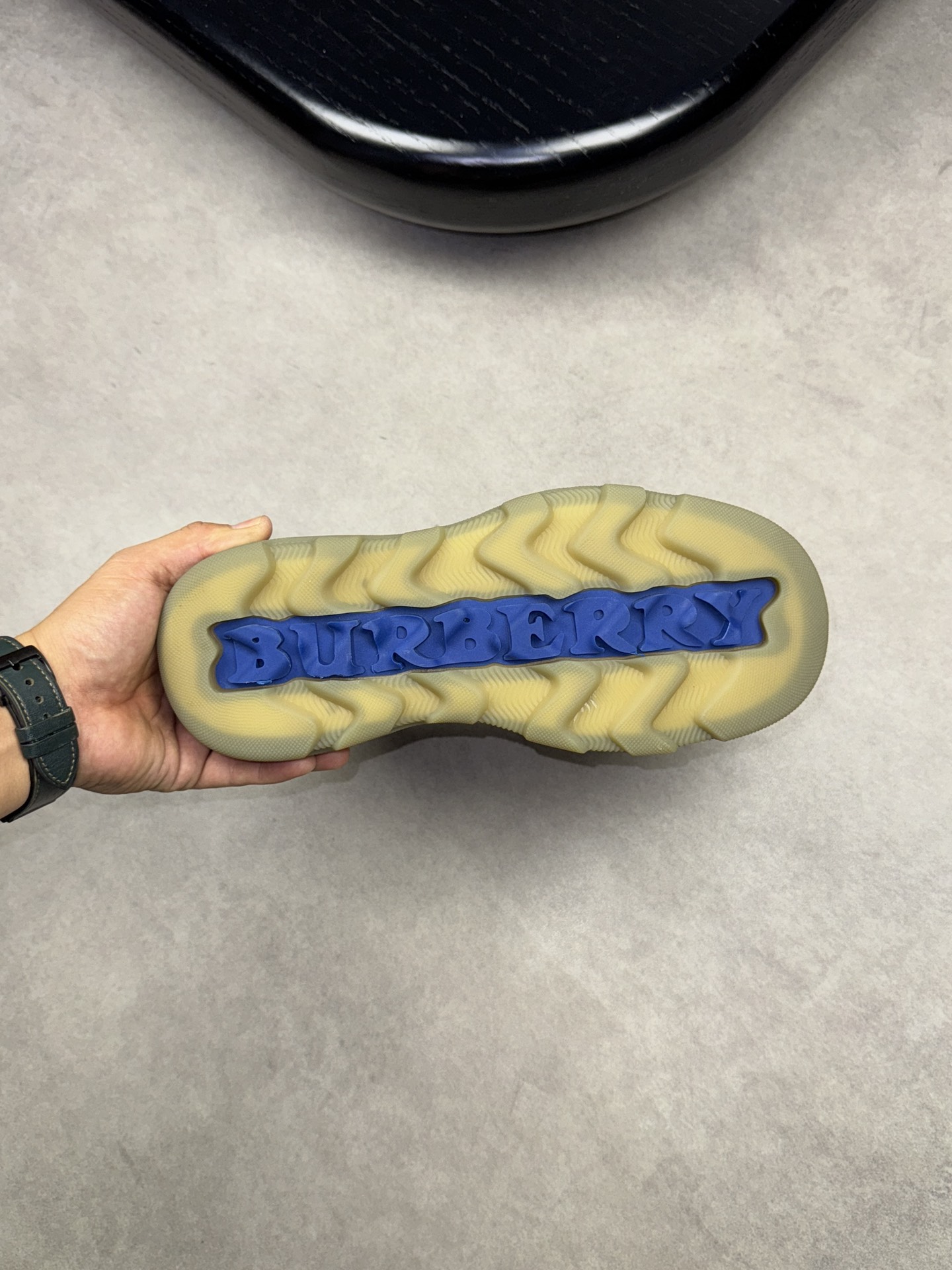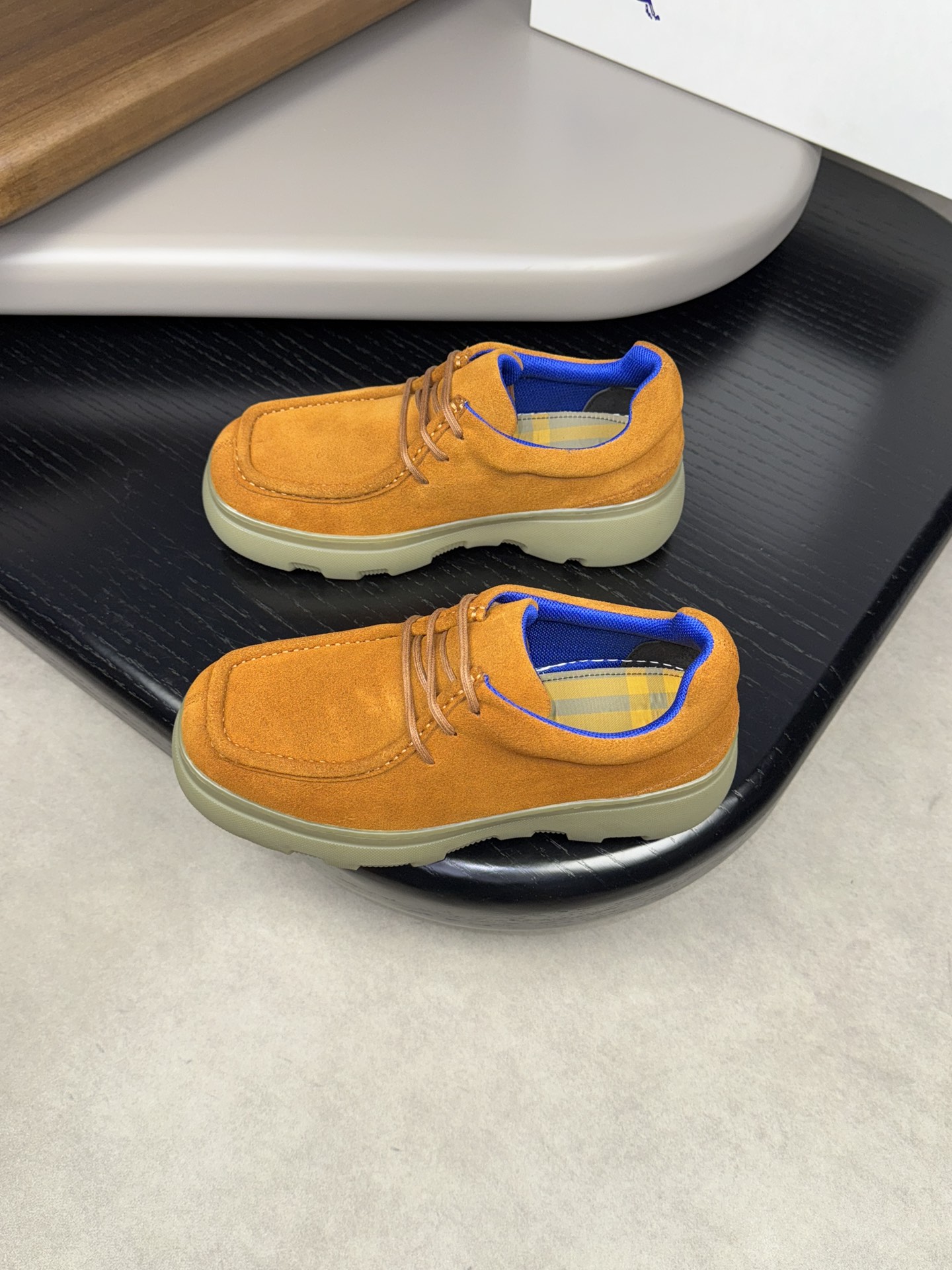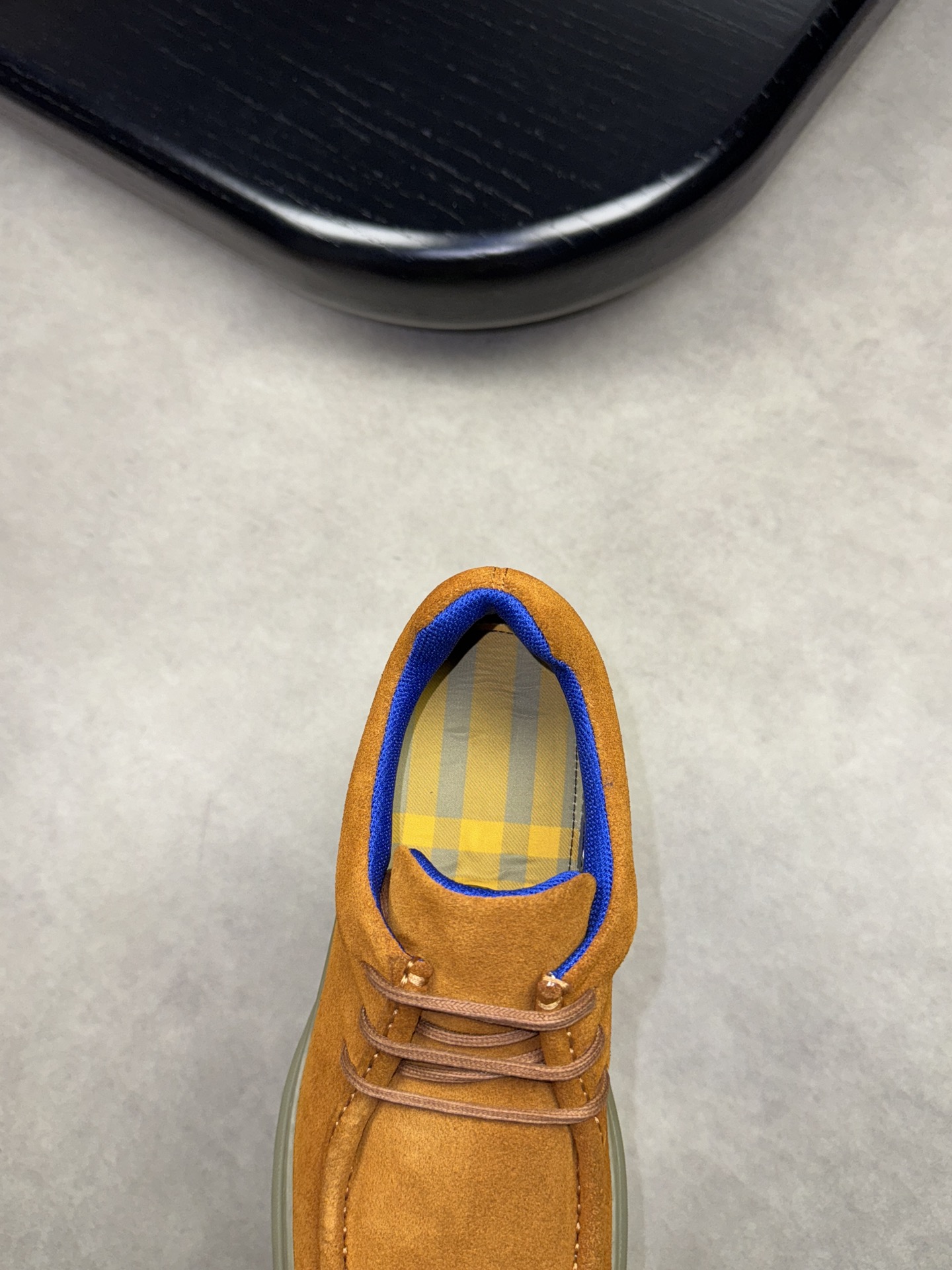 - Upper: ?? fleece calfskin with hand-stitched marking