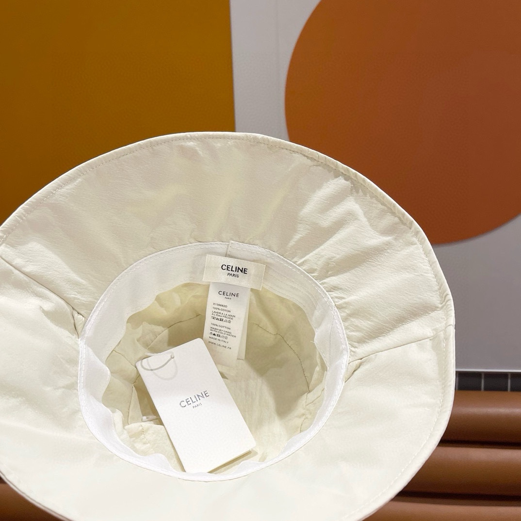 CELINE's simple and unadorned fisherman's hat for spring and summer sun protection, with a bow and large brim, is a trendy outdoor sunshade cloth hat