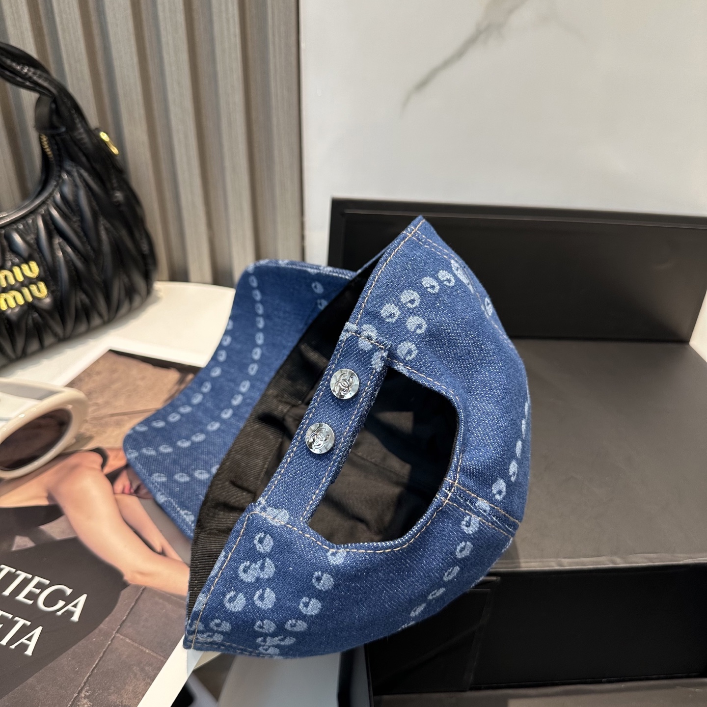The new Chanel high-version denim baseball cap is available in two styles: light blue and dark blue. Selected from high-quality denim fabric, it is tough and has a rich texture, providing a comfortable wearing experience. The hat body is printed with an exquisite white circular pattern and is paired with the brand's signature double C logo, highlighting its unique fashion taste and brand charm. The classic baseball cap style is suitable for wearing in various occasions. Whether paired with casual or sportswear, it can easily enhance the overall fashion sense of the look. It is a trendy item that fashion enthusiasts should not miss.