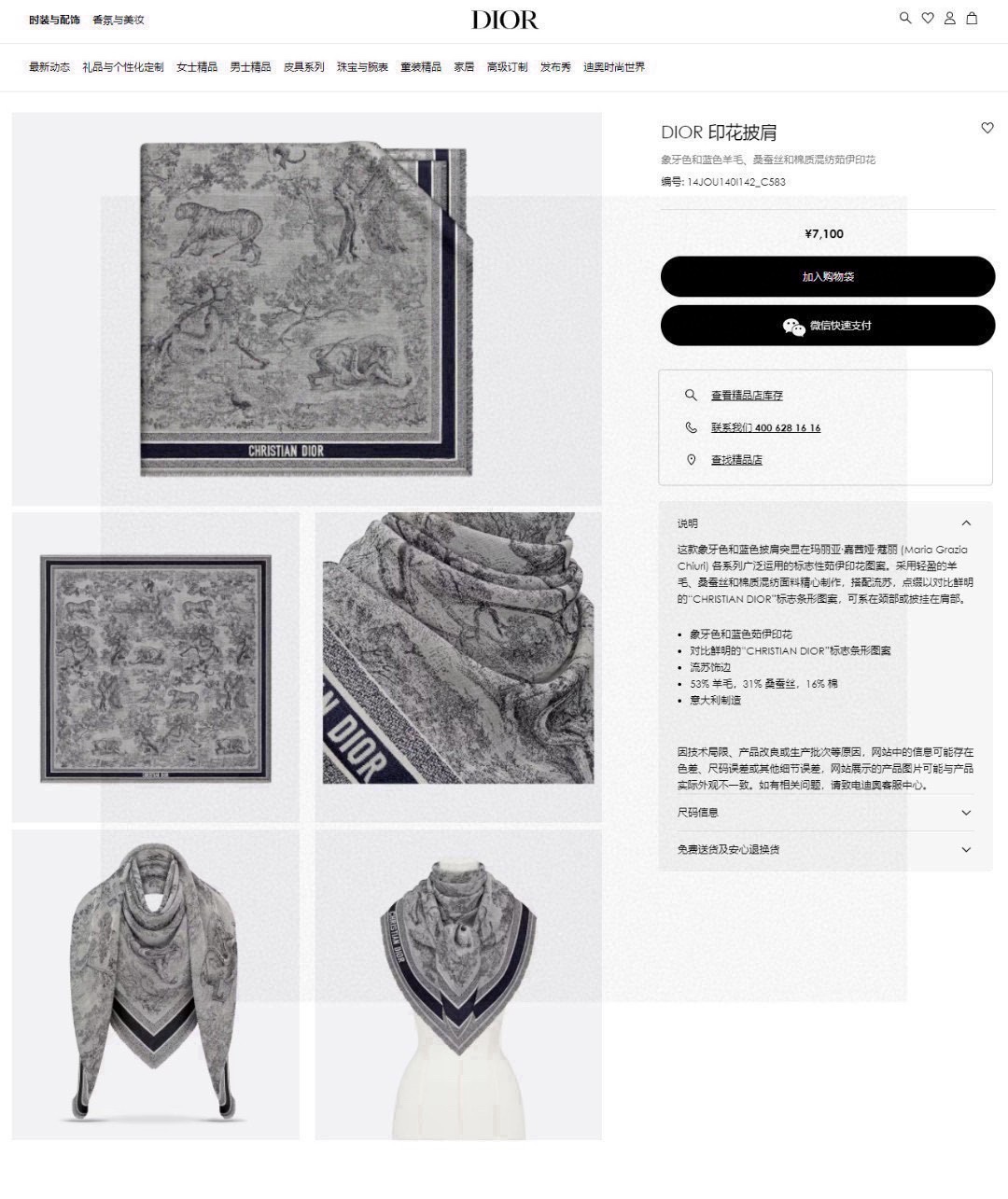 Bestseller ?? Original item top-quality is here ????????????Dior's latest counter item [D Jungle Animal Original item 140] Cashmere handkerchief ?? A perfect match for both vacation and daily life ?? Order private stream] Just seeing it makes me want to go on vacation ? ? USUALLY the OUTFIT IS ALSO VERY GOOD to match, THE WHOLE PERSON WILL LOOK ENERGETIC ???? MANY without saying more, the detail quality is clear TO see, definitely praise the high specification quality ?? Handcrafted beard edge size: 140*140 handkerchief, 42% silk +42% wool +16% cotton