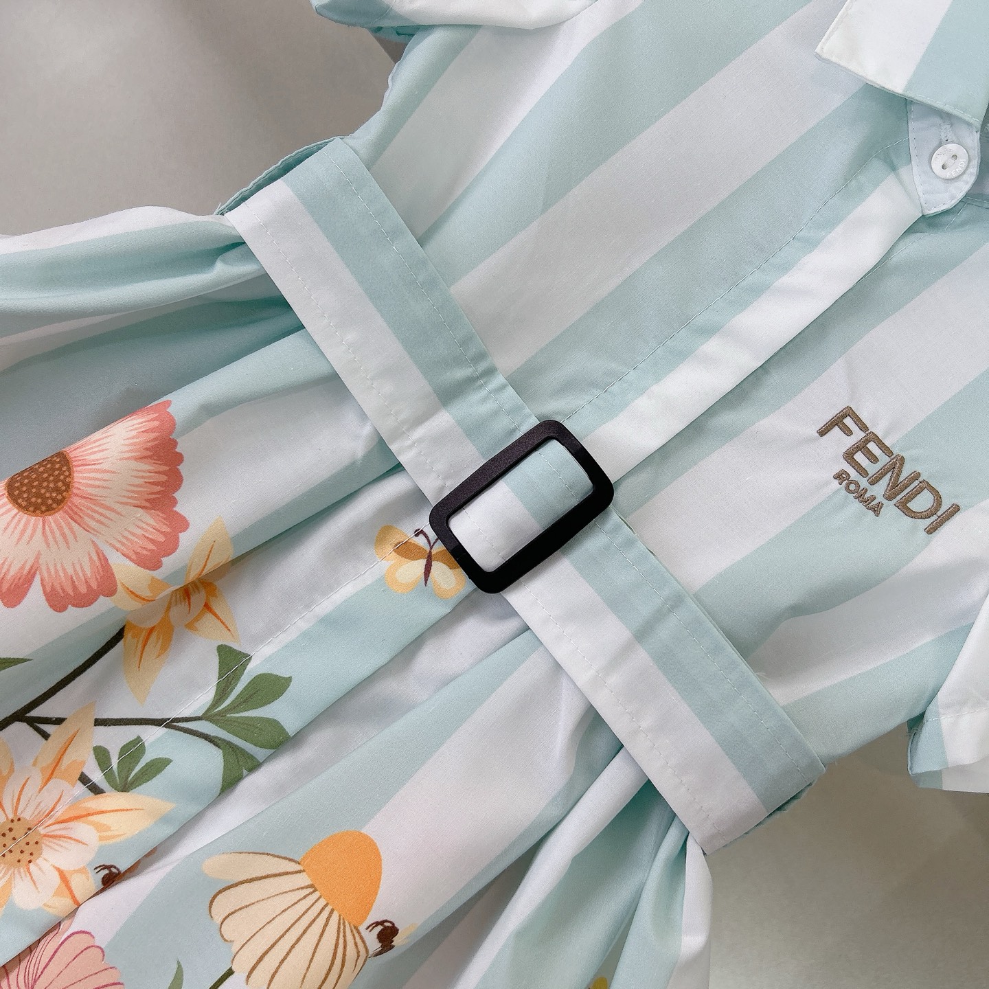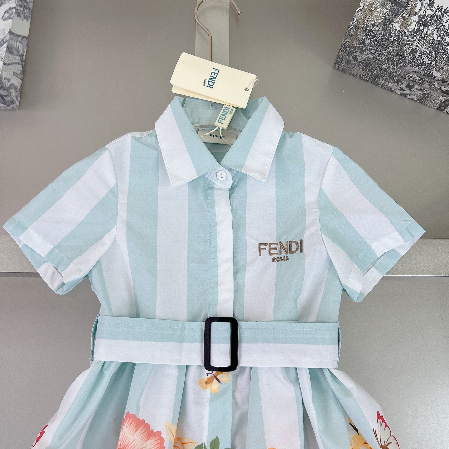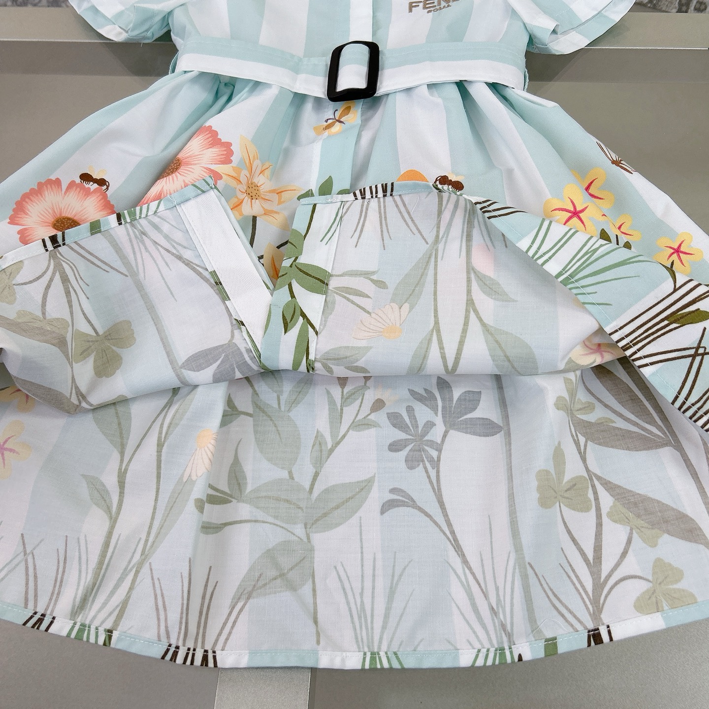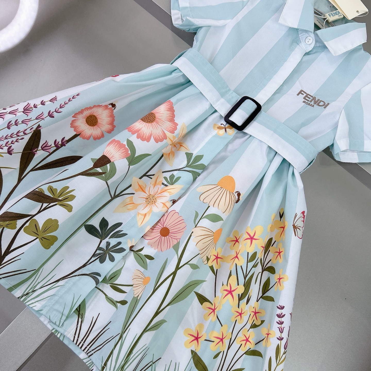 Fendi high-end children's clothes, girls dress, single-breasted princess dress shirts, thousand goldwind flower design Belt can be closed Classic embroidered logo, upper body comfortable, good-looking, code number: 90/100/110/120/130/140/150/160 cm