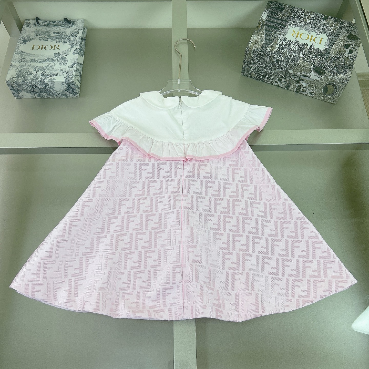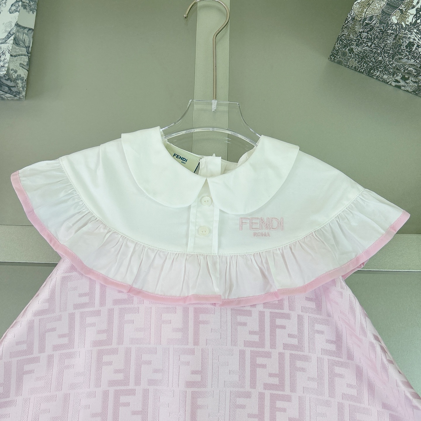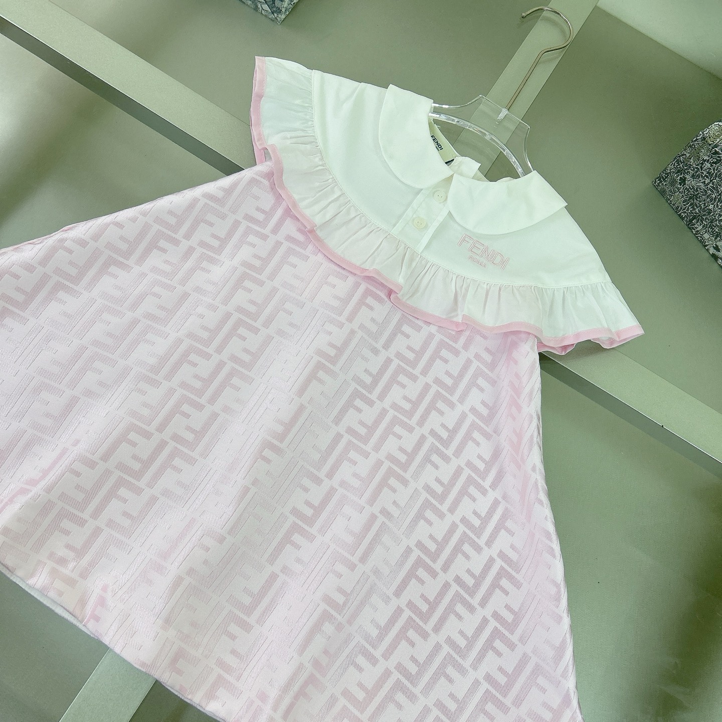 Fendi, high-end children's clothes, girls dress, heavy delicate embroidery, decorated with the whole picture of FF fastens with color logo, the upper part of the body comfortable, good-looking, code number: 90/100/110/120/130/140/150/160 cm