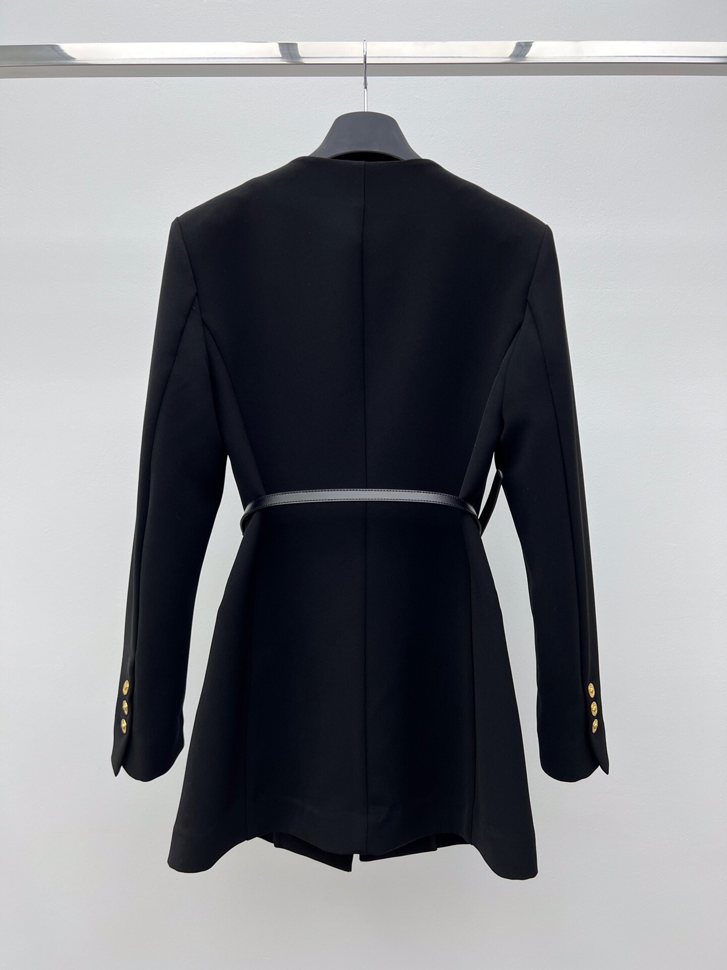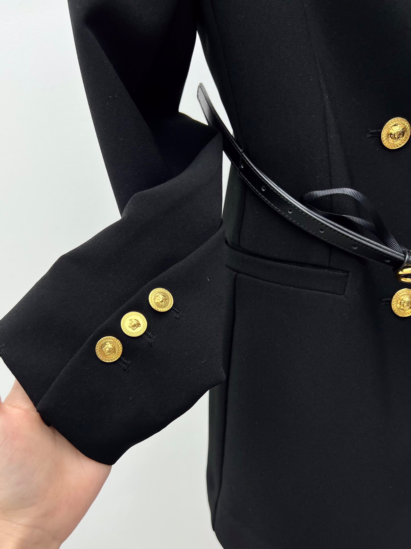 Youdaoplaceholder0 * A cutout dress ?? Hot show black gold suit dress The figure-hugging and waist-cinching silhouette Outlines a perfect figure The hollowed-out design at the collarbone highlights the charm of women Medusa metal buttons adorn the chest and cuffs The black and gold color series is extremely eye-catching Create a fashionable and elegant style sml