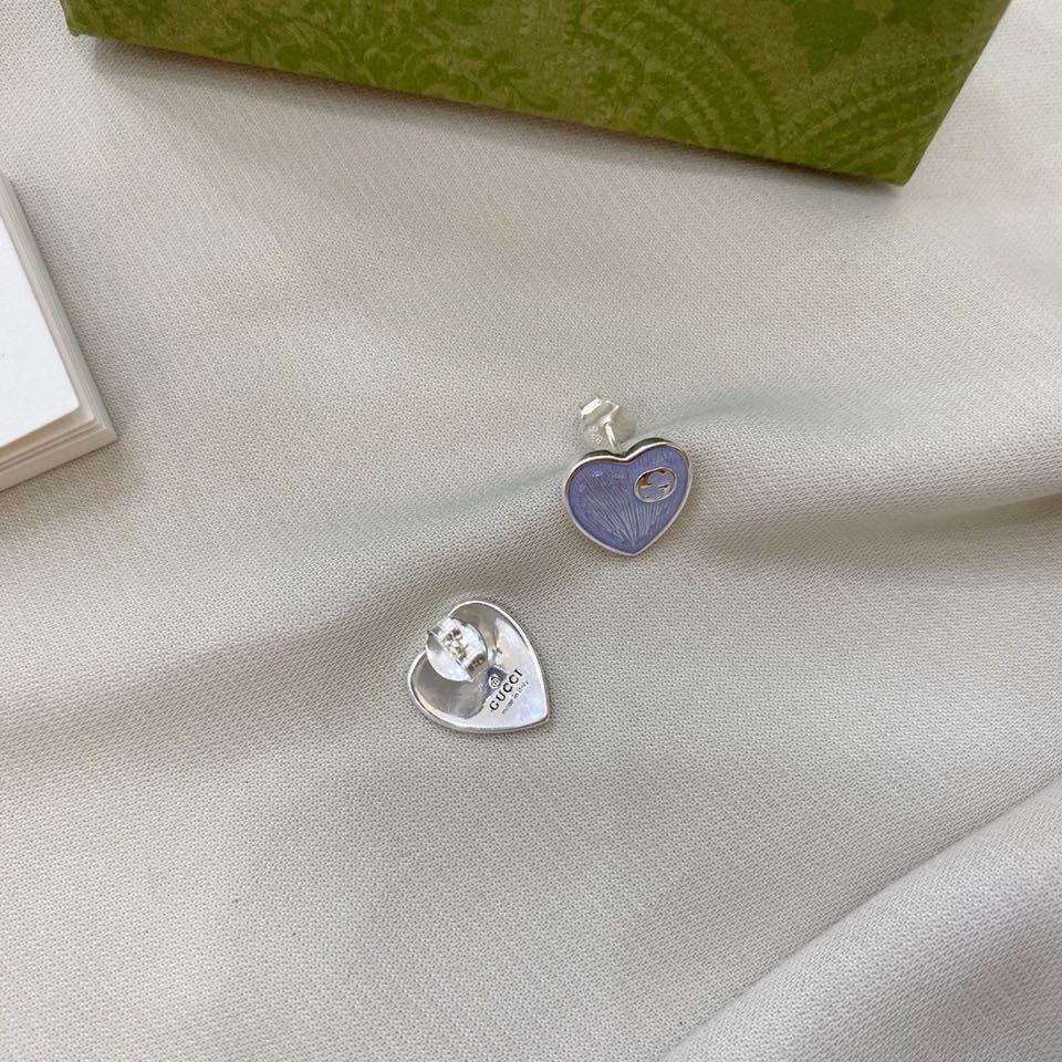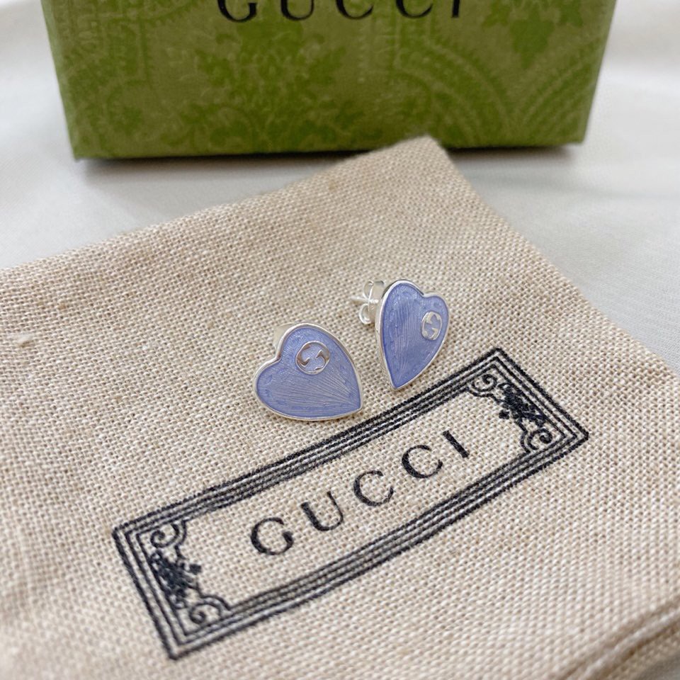 ??Gucci Double G enamel light blue heart-shaped stud Earrings Earrings/Ear studs