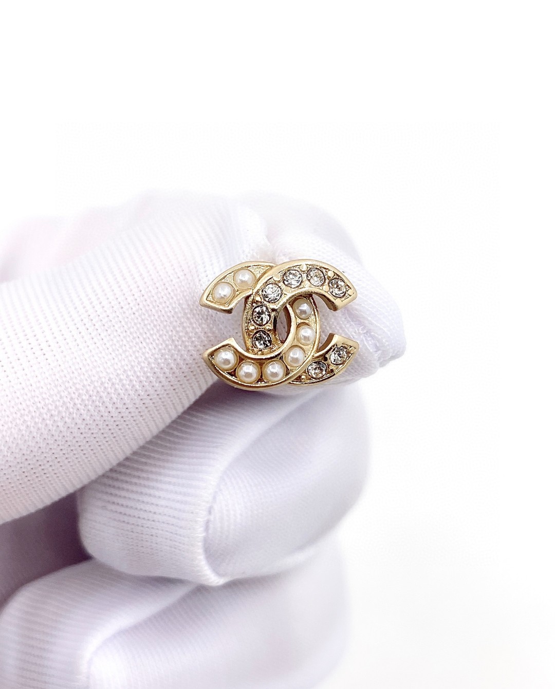 CHANEL half diamond half bead double c stud earrings, premium quality, cabinet same material, real brass, ion plating, 925 silver needle, exclusive real photo ? Exquisitely FINE WORKMANSHIP, heavy industry version, super FAIRY BEAUTIFUL ONE, WORKMANSHIP SUPER CAREFUL without any loopholes, comparable zp buy it to earn Earrings/Ear studs