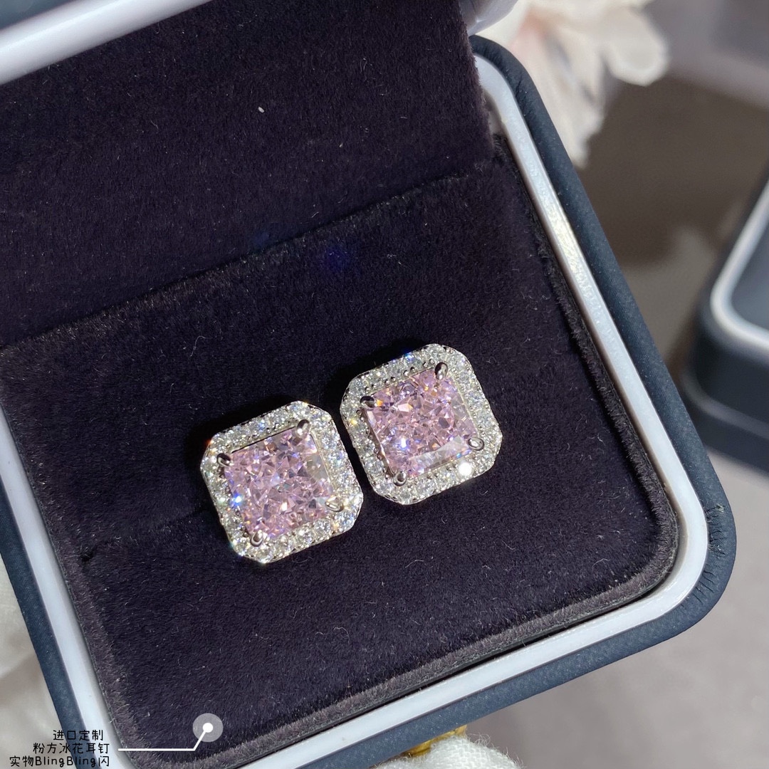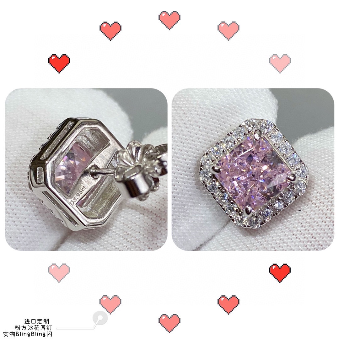 Colored gemstones: 9? 2? 5? 5140250, imported custom, square pink ice flower earrings ?? If diamonds are the white moonlight in a woman's heart, then pink diamonds are the cinnabar mole that falls on the heart under the white moonlight. ?? Pink diamonds are not just a luxury of beauty, but the best embellishment of love. ?? Complex with simplicity, simple with form, ?? made by bright cut technique, captivating, at first glance, one cannot extricate oneself ?? adorN charming in different forms. Earrings/Ear studs