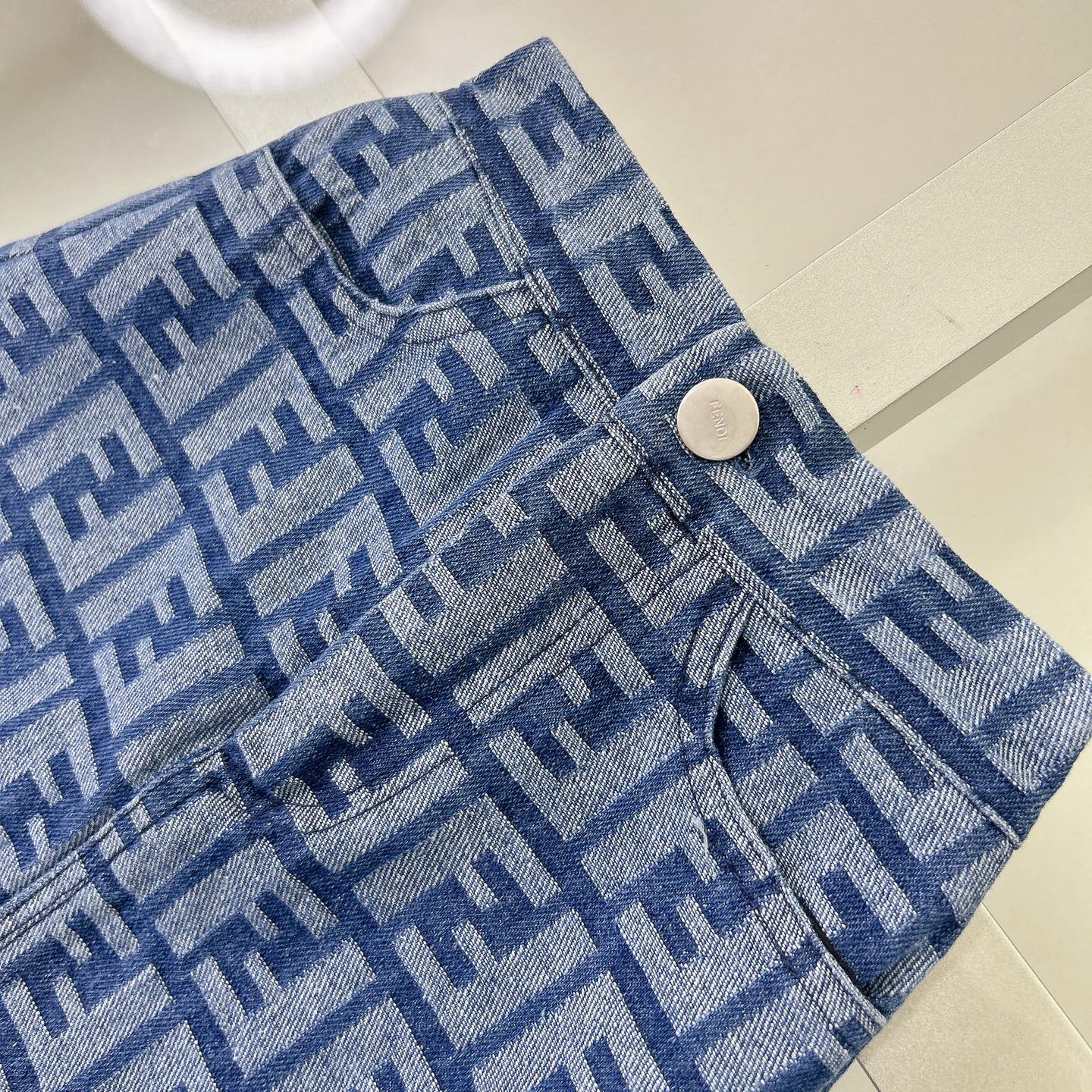 Fendi, high-end children's wear, the girl's skirt, the letter printed cotton fabrics, exquisite shell button logo lettering, short skirt jacquard denim, upper body comfortable, good-looking, code number: 90/100/110/120/130/140/150 cm