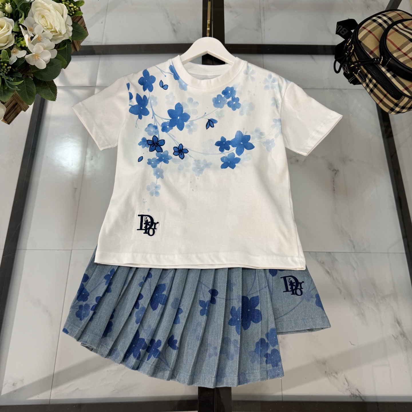Dior, high-end children's clothes, girls dress, ink printing technology, import machine conley jet printing denim fabrics, upper body comfortable, good-looking, code number: 100/110/120/130/140/150 cm