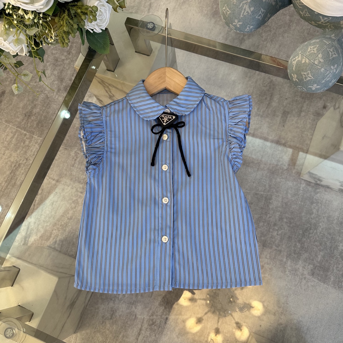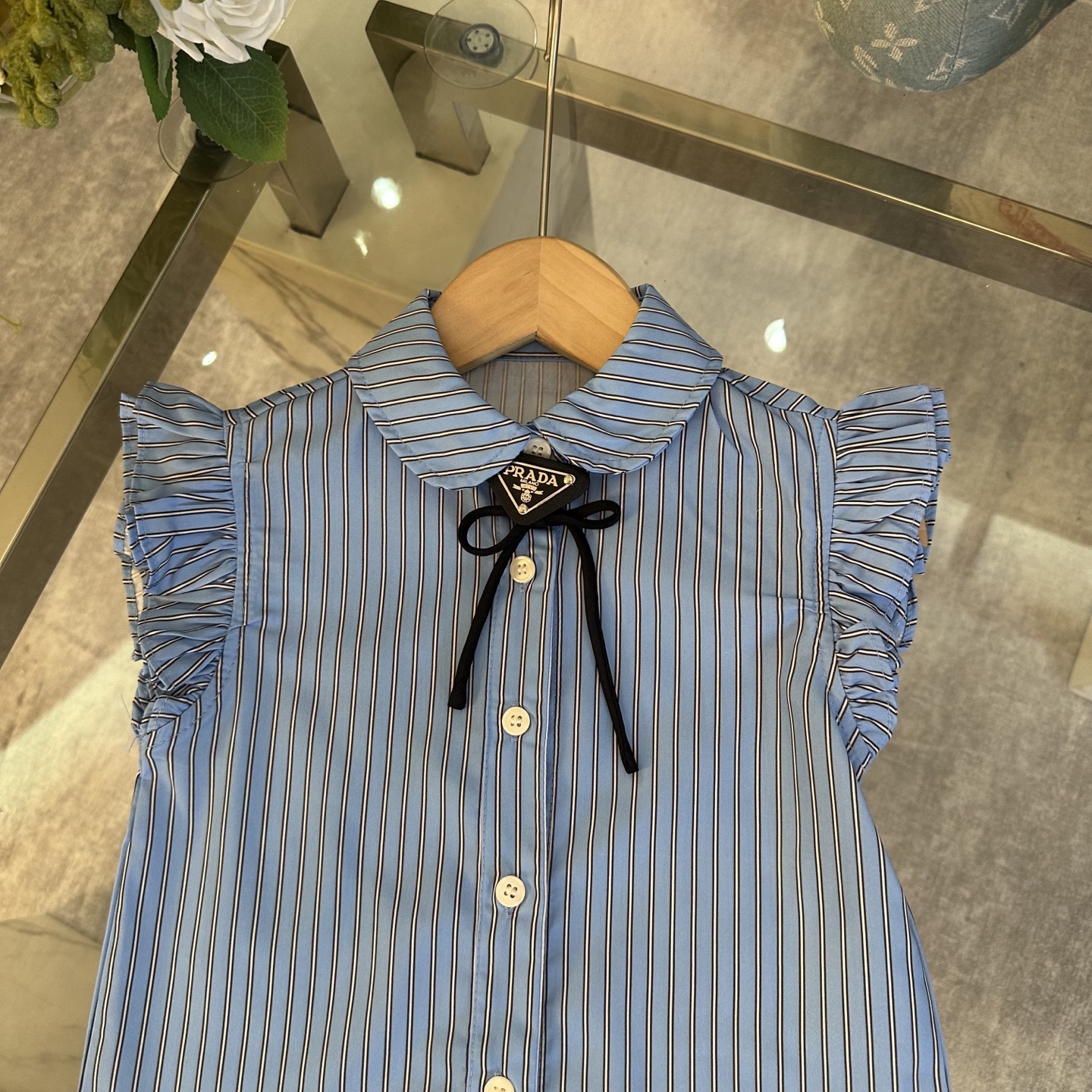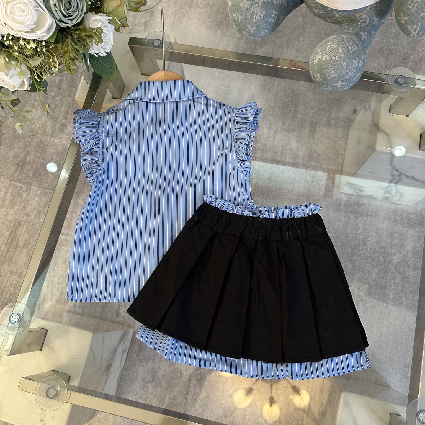 Prada, high-end children's wear, the girl's skirt, shirt + pleated skirt, belt design, pure cotton fabrics, upper body comfortable, good-looking, code number: 100/110/120/130/140/150 cm