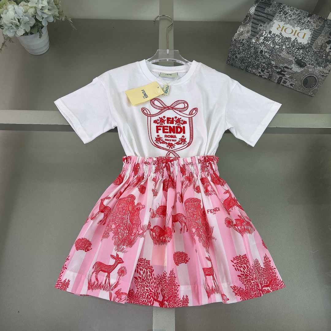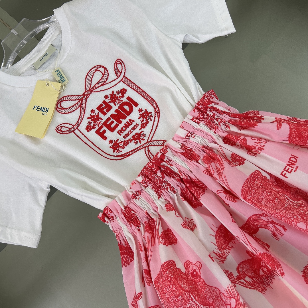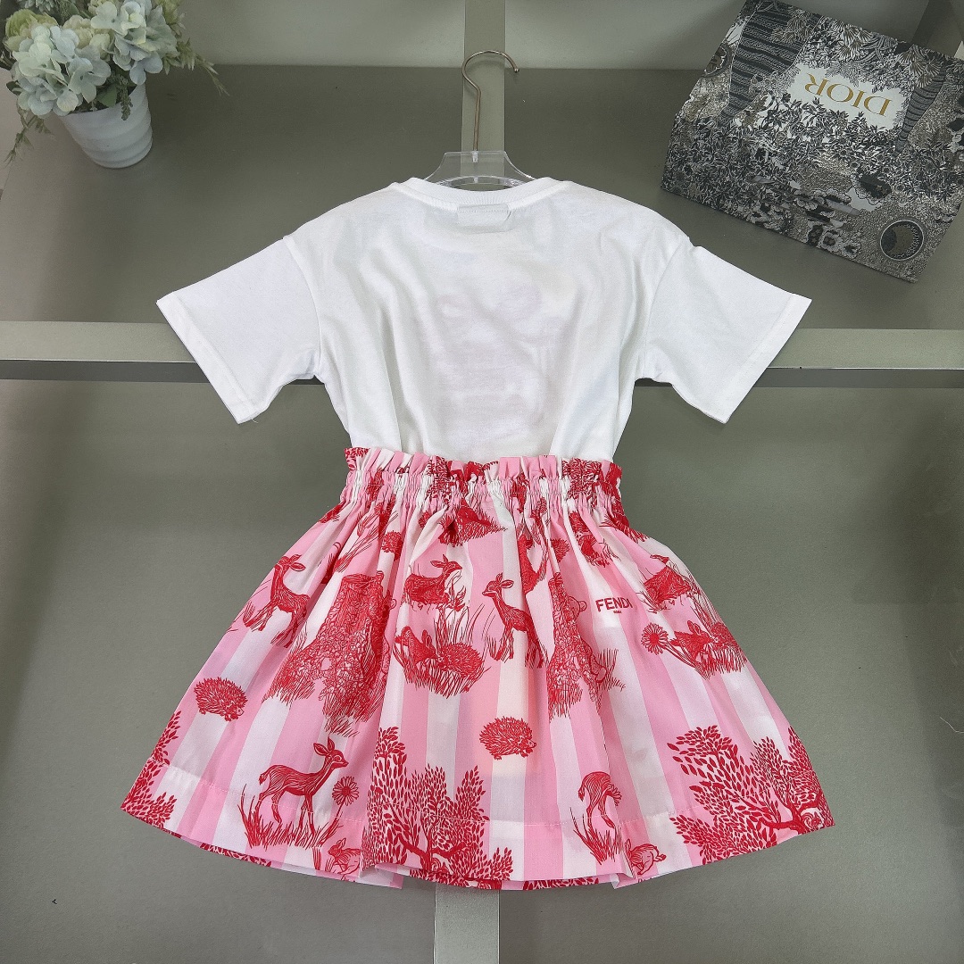 Reservation for 4 days! Fendi, high-end children's clothes, girls dress, cotton T-shirt, short skirt of cotton is very thin, his upper body comfortable, good-looking, code number: 90/100/110/120/130/140/150/160 cm