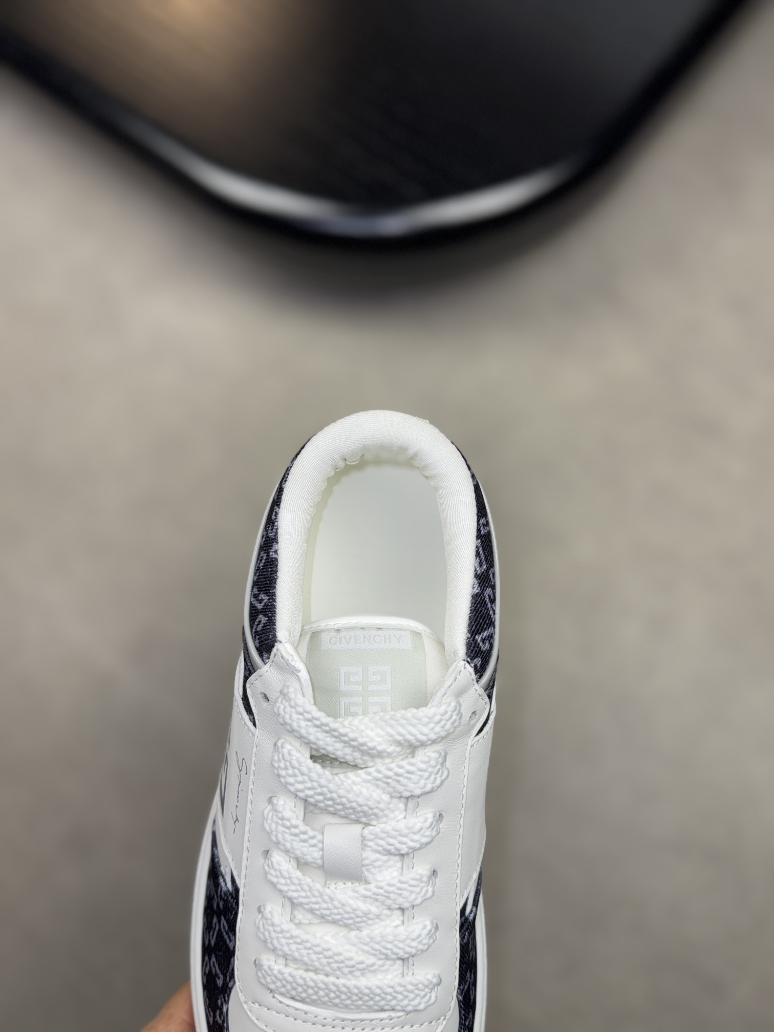 GIVENCHY #3009?????? - Premium quality original single ?????? "Shoe upper" ?? Napa calfskin, brand totem fabric, silk-screened brand logo - Inside: Brand mesh canvas, foot pads; Water-dyed cowhide - Outsole: Ultra-light TPR