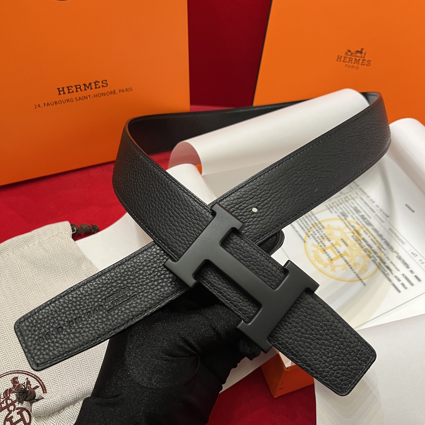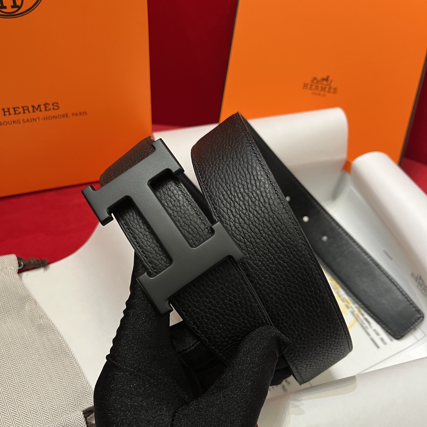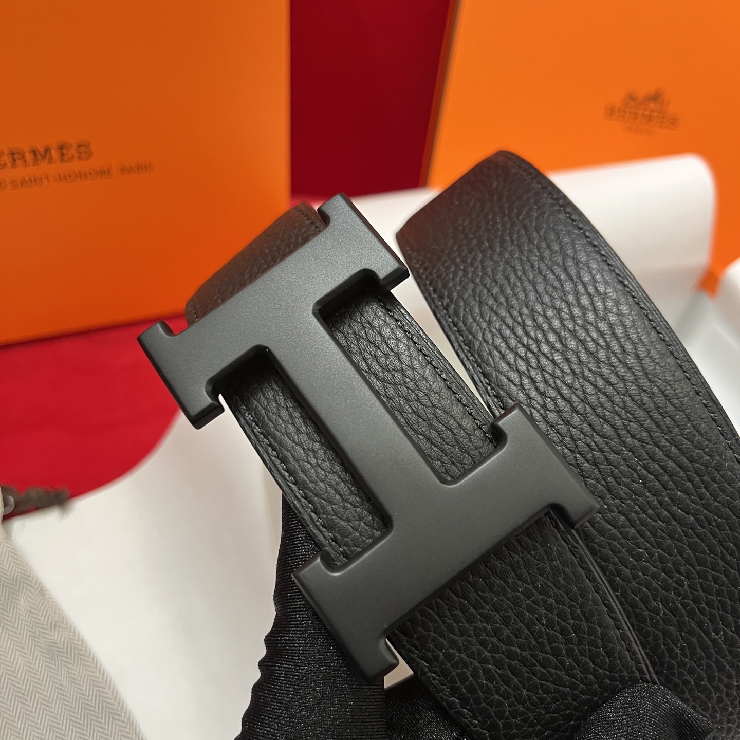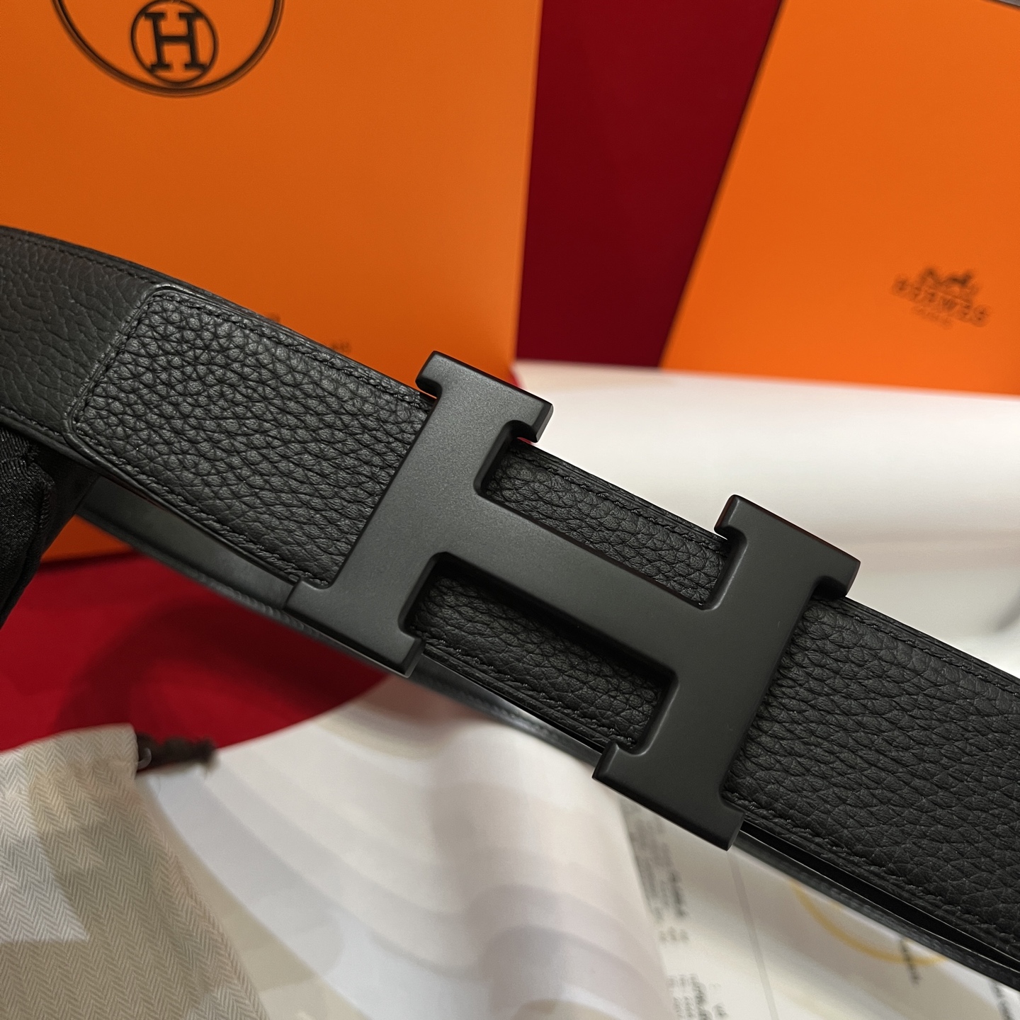 The Hermes men's belt is available on both sides with a width of 38mm. It is set off by the original Italian togo lychee, with an imported white core base box leather. The exquisite and classic H black buckle is made
