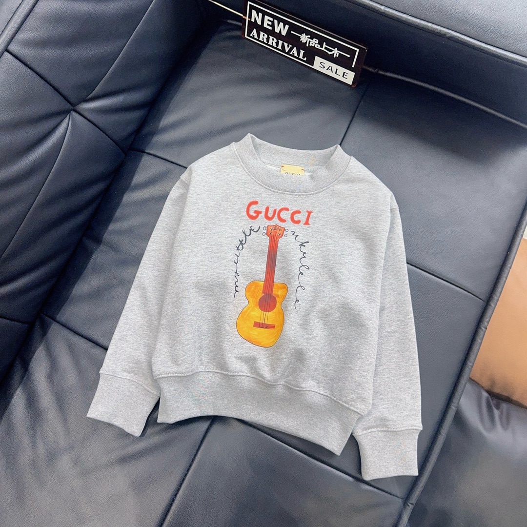 Reservation for 4 days! Gucci Gucci, high-end children's wear, private fleece, lovely guitar ?? logo printing design, pure cotton fabrics, upper body comfortable, good-looking, code number: 100/110/120/130/140/150 cm