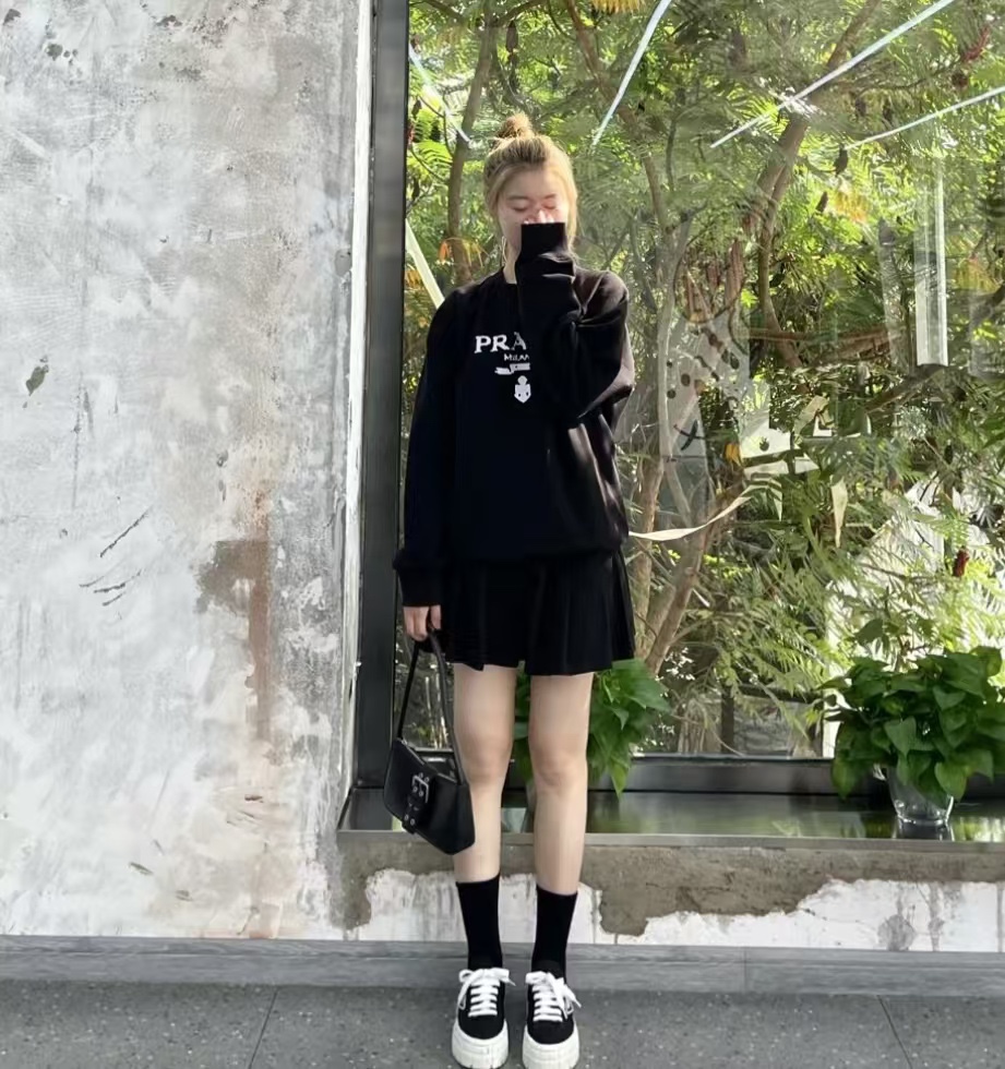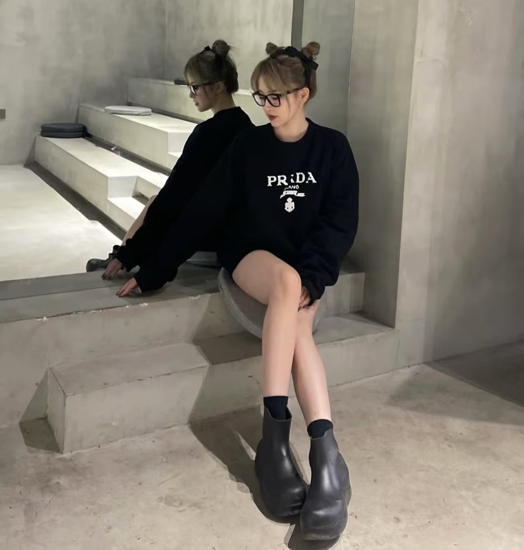 PRADA/ Prada 24Fw toothbrush embroidered logo casual round-neck sweatshirt wearing effect #