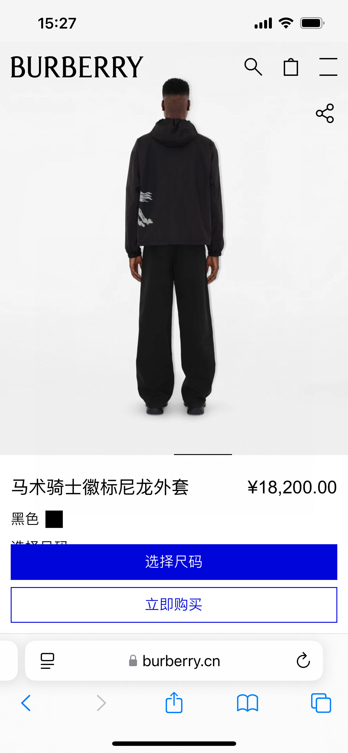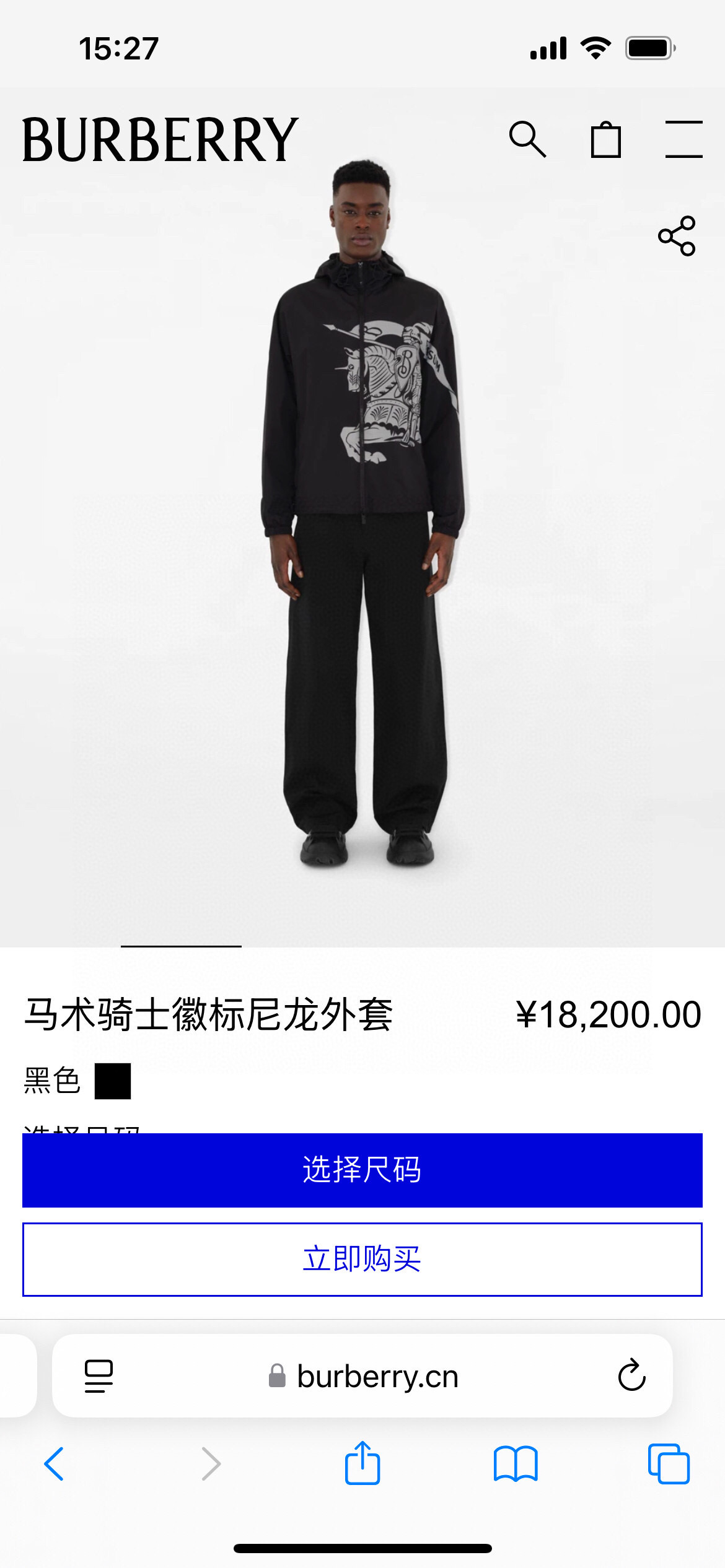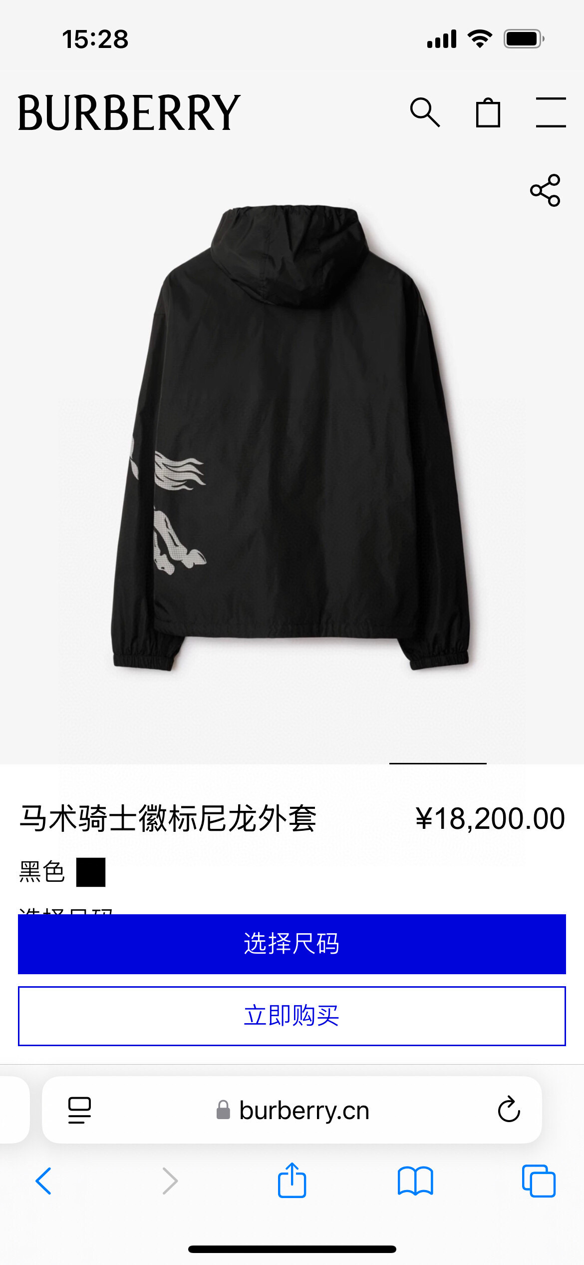 BURBERRY's Spring/Summer 25 new men's Equestrian Knight logo nylon windbreaker jacket features a positioning print of the equestrian knight logo on the front, positioning laser cutting, and a loose fit. It is equipped with a B-shaped zipper pull, bidirectional zipper opening and closing, a drawstring hood and hem, side zipper pockets, and elastic cuffs. Both the outer and inner layers are made of nylon fabric, offering a full range of styles. Black size: M ~ XXXL. Please report your height and weight when placing an order