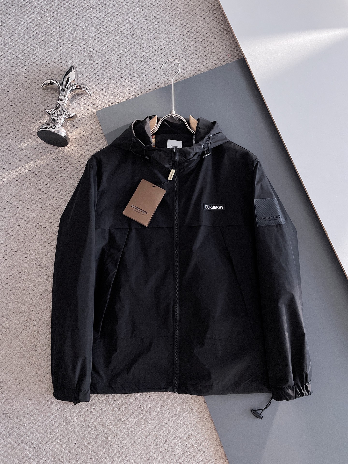Burberry's new Spring 2025 casual jacket, the latest fashionable casual zipper jacket, fashionable casual jacket! Made of professionally customized technological fabric, the surface is clean, smooth and lustrous. The texture is obvious even through the screen. It is comfortable, light and not stuffy when worn, providing you with the most enjoyable wearing experience! Exquisite Logo accessories! It perfectly enhances the overall sense of luxury and grade, and the high-end luxurious atmosphere can be immediately perceived! This basic and regular hooded jacket has a simple and versatile cut that is not picky about the wearer. It can easily handle various occasions and environments and is undoubtedly an essential item for daily commuting! Size: M-3XL. Please report your height and weight when placing an order!