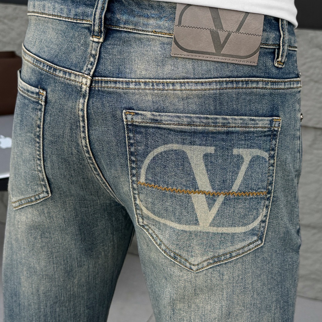 Valentino's 2025ss Spring/Summer new men's jeans are made of imported denim fabric, which is heavy, eco-friendly, washable, has a soft and durable feel, a small straight cut with slight elasticity, and is slimming and form-fitting. The details are perfect, and the hardware and accessories are of high quality. The workmanship is fine and it is an extraordinary product. Size: 28-38, shipped the next day
