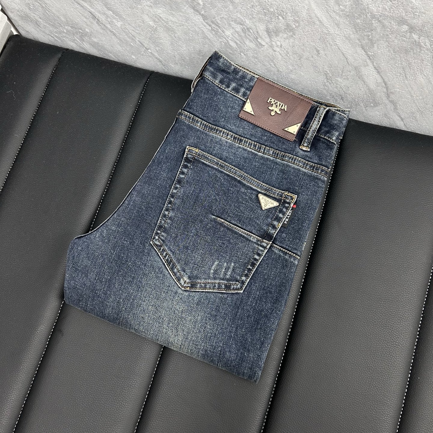 Prada 's spring/Summer 2025 new collection is now available. High-quality bestseller jeans ?? super custom style, the same classic LOGO as G network, slim and elastic, comfortable and skin-friendly to wear, the cut is amazing ?? details and workmanship are impeccable! Simple European style, light luxury and high-end! Code number: 29-38