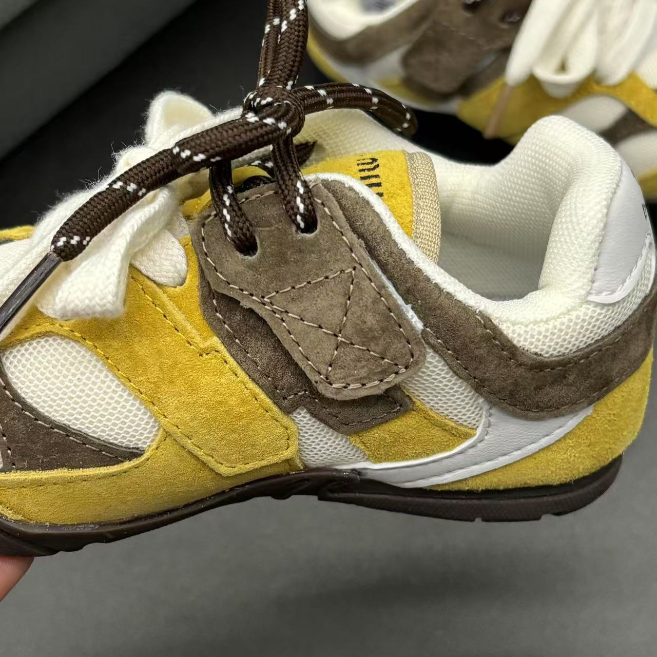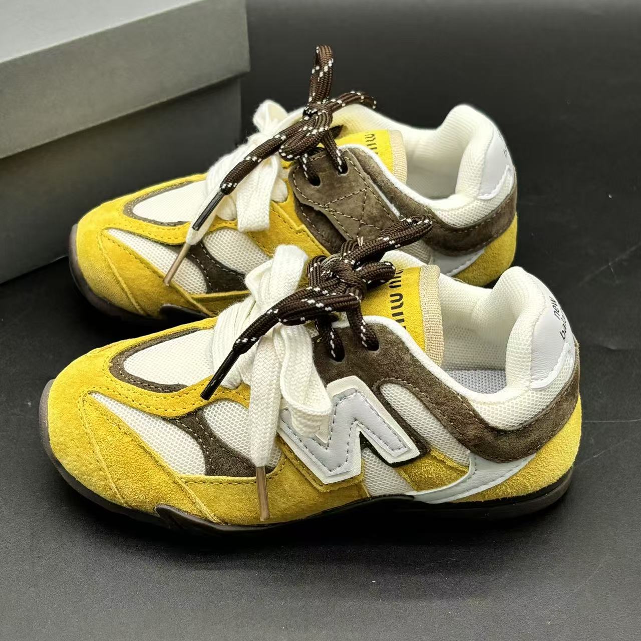 High-end children's shoes, men's and women's shoes, NB miumiu collaboration Pig eight leather mesh Velcro children's shoes, with lacing design, comfortable and good-looking to wear, size: 24-37