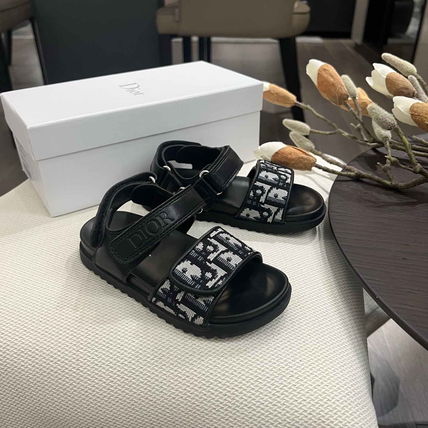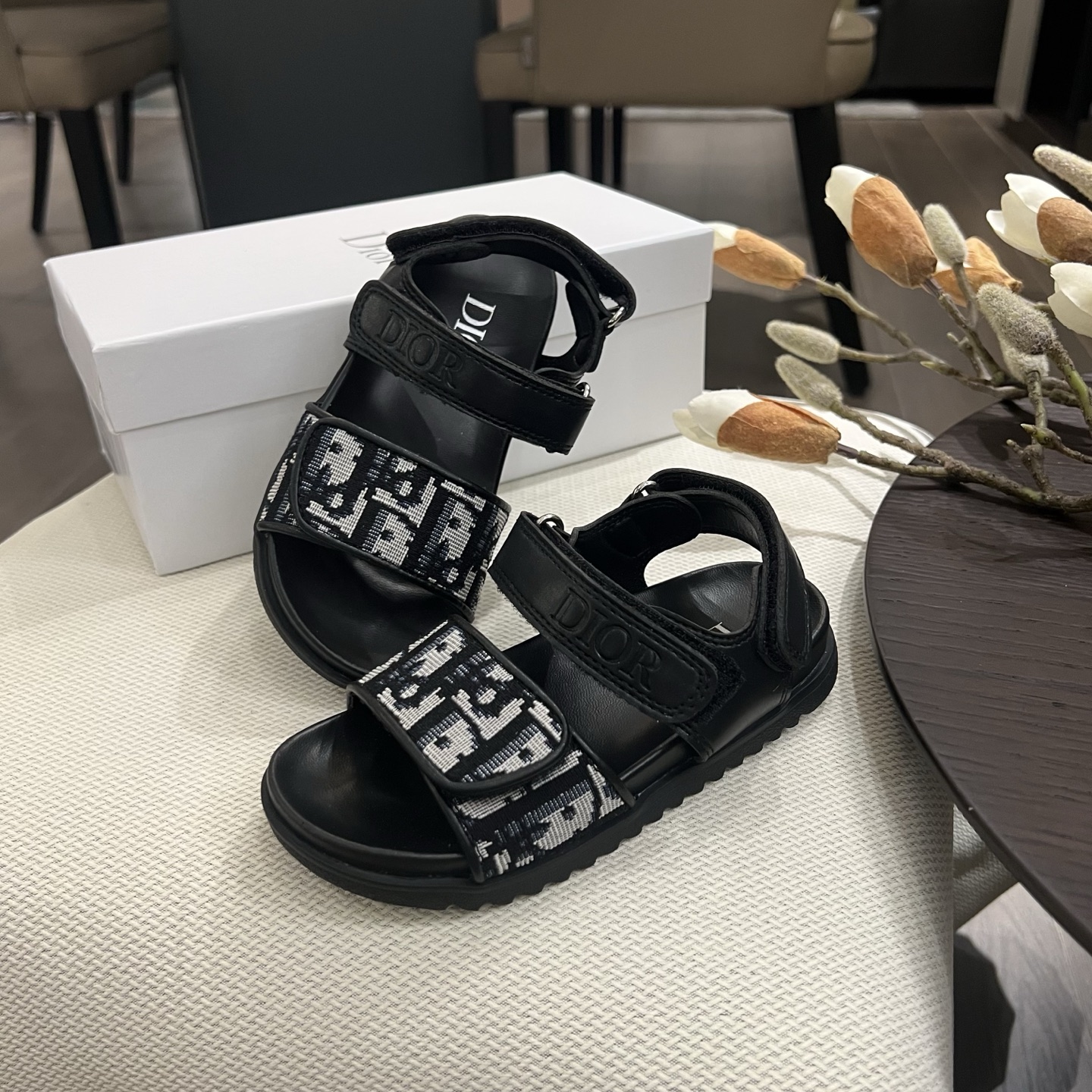 Reservation for 4 days! Dior, high-end children's shoes, boys' and girls' sandals, Velcro design, classic embroidery, rubber Pu outsole, comfortable and good-looking to wear. Sizes: 26, 27, 28, 29, 30, 31, 32, 33, 34, 35