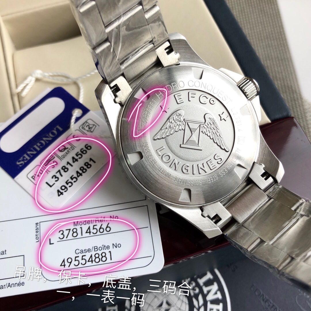 Longines -Longines, Conquest Diving series men's watches, the Submariner of Longines Water-resistant to 300 meters, 41mm in diameter, and equipped with an automatic mechanical Eta2824 movement The original shell cover on the back is simple and fashionable, suitable for business and casual use. Screw-down crown, ceramic bezel, double-folding safety clasp with diving extension device; Sapphire mirror surface, with multiple anti-reflective coatings on both sides; Black and blue, with a full set of packaging, exclusive first release!