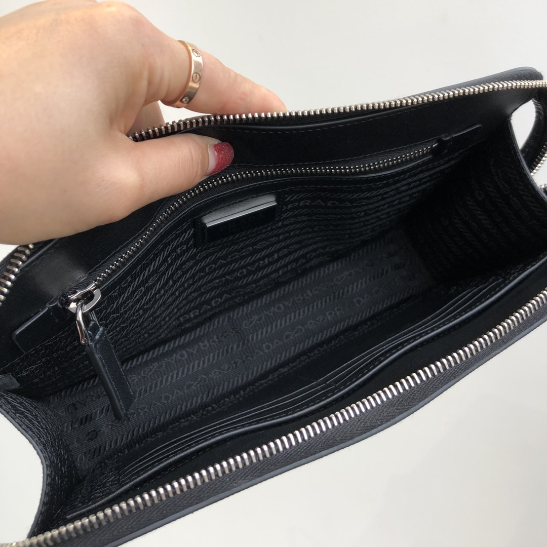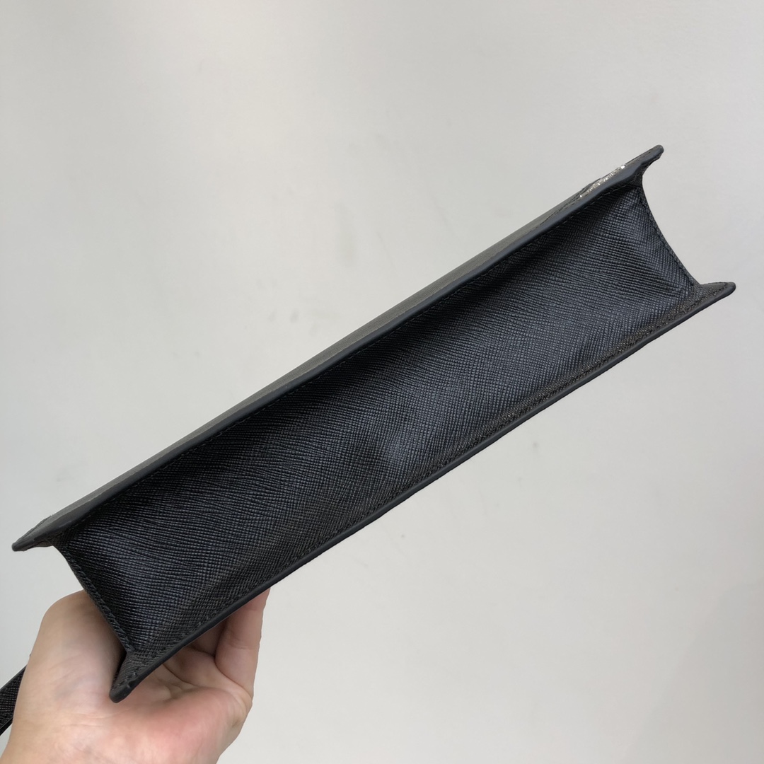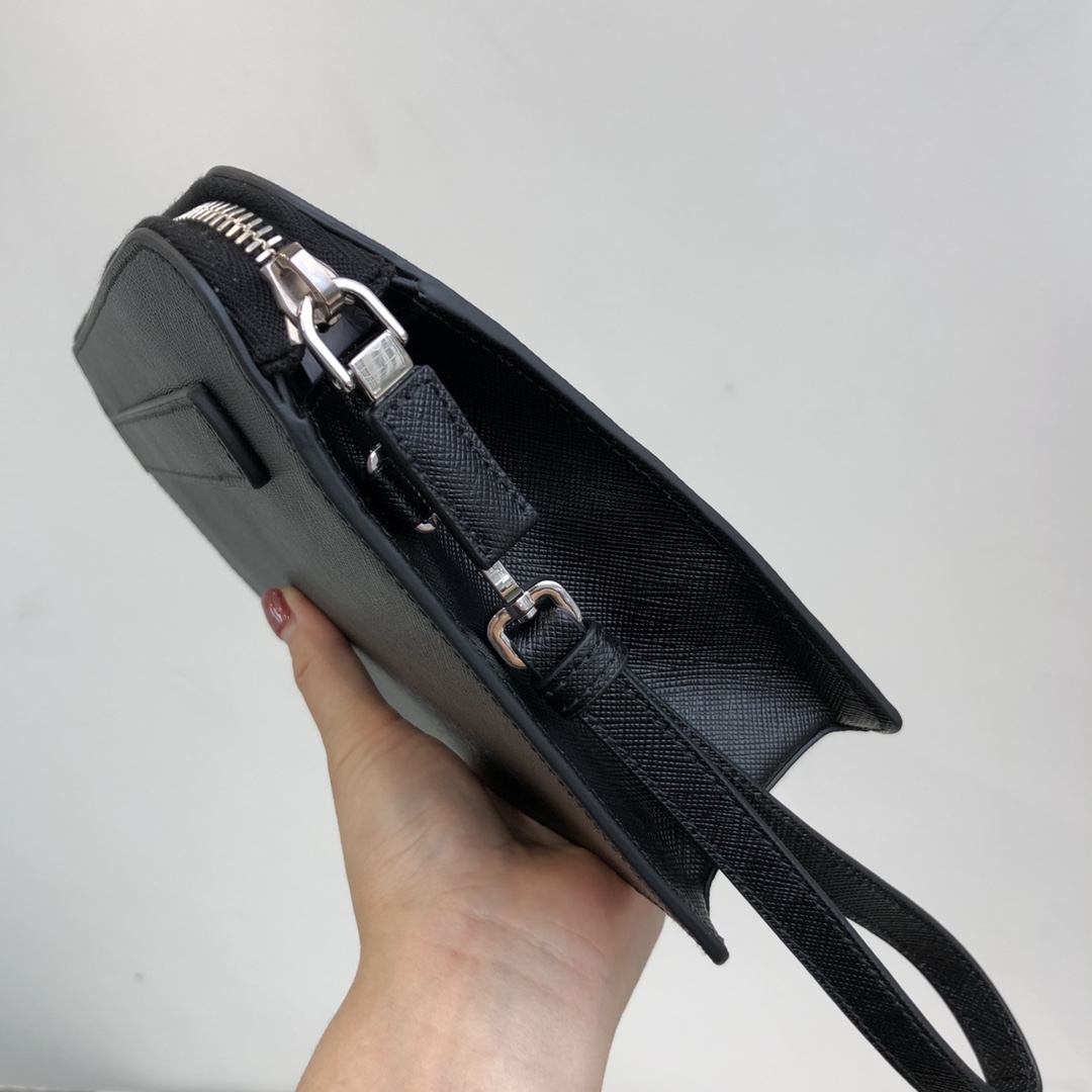 26.5cm black Prada men's clutch with letter grains ~