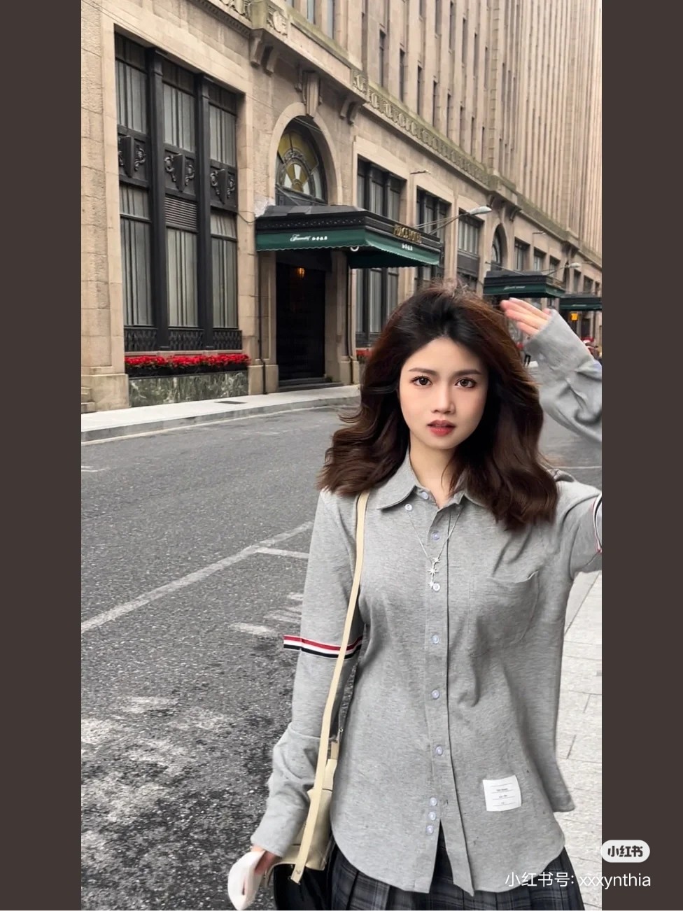 The effect of the model wearing it Thom Browne/ Tom Brown single-sleeved woven strap long-sleeved shirt