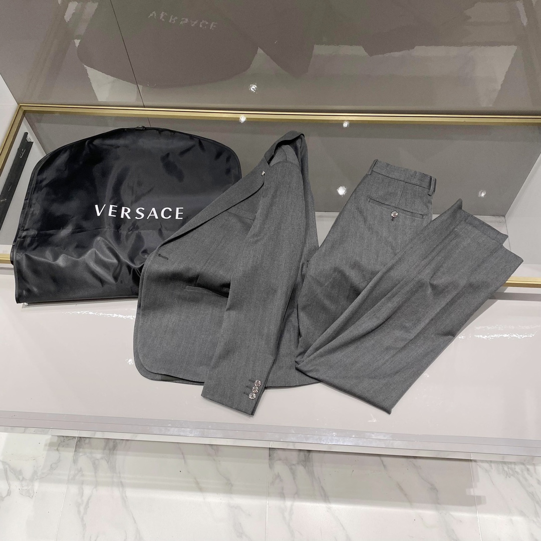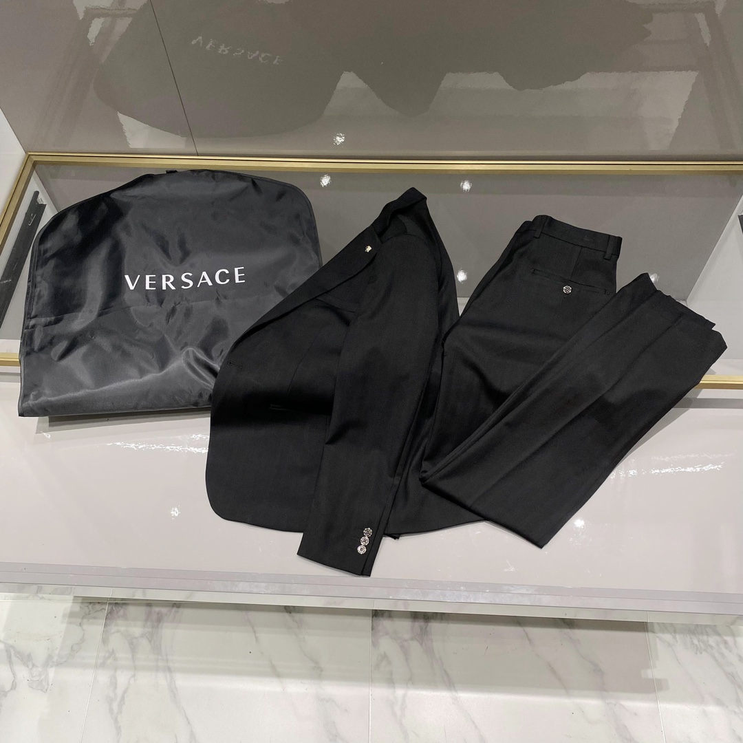 New style suit! VERSA*E Style * is a perennial favorite in the Western fashion world, an essential item in the wardrobes of business and travel elites. It is suitable for men's formal wear and a one-button suit. The brand's classic Logo is super elegant. The lapel collar and the neckline accessory are stylish and good-looking brooches. The solid color scheme is elegant and generous. The back and center slit design makes it a classic style that comes out every quarter! The fit is really great. Highly recommended! The neat and ergonomic cut makes the upper body look upright and handsome, comfortable and form-fitting, with a gentlemanly demeanor fully visible. The carefully selected suit fabric is 20% wool, 18% viscose, 58% polyester, and 4% spandex, which are soft and fine to the touch, with good luster and elasticity. The silhouette and the loose and tight waist-cinching cut add more comfort to the outfits of stylish men, making them look slimmer without losing their coolness! Fan * Zhe is renowned worldwide for its classic and solemn design style, which is used to produce high-end professional and business formal wear sets. The production process of suits is highly demanding and time-consuming. A high-end business casual suit set that can be worn all year round! The fabric is smooth and flat, with a smooth, full and sticky hand feel. The appearance is crisp and upright. It is made of high-quality wool raw materials, and the quality of the materials used is visible. Regarding details: The high-end suit features modern tailoring, integrating traditional tailoring art with modern production techniques. It uses fully imported automatic cutting pieces, with almost zero error in each piece of fabric. Then, it is hand-sewn by top tailors to ensure a snugly fit and aesthetic appearance at every point. The front has two cuts, and based on the principles of ergonomics, it is form-fitting but not tight. The tightness on both sides of the waistband of the trousers can be adjusted! The classic lapel design is classic yet not conservative, simple and elegant. We insist on hand-stitched handicrafts, all of which are made by experienced masters. We quote prices based on the working hours per meter, which is time-consuming and labor-intensive. Every stitch is meticulous and of high quality, with no burrs or stitches on either side. Handcrafted sleeves, handcrafted buttons, handcrafted calibration, and handcrafted stitching can be seen everywhere. The smooth and delicate texture effectively reduces static electricity in autumn and winter, giving a consistent high-end feel both inside and out. It's worth getting for any man and can boost your dignity in all kinds of formal occasions! ?????? note: suits are not sold separately and are not adjusted in size individually Each suit comes with a dust-proof bag. Color: grey, black Size: 46-56 Upper garment Size 46: Chest circumference 100- shoulder width 44- Sleeve length 62- garment length 69 Size 48: Chest circumference 104- shoulder width 45- Sleeve length 63- garment length 70 Size 50: Chest circumference 108- shoulder width 46- Sleeve length 64- garment length 71 Size 52: Chest circumference 112- shoulder width 47- sleeve length 65- garment length 72 Size 54: Chest circumference 116- shoulder width 48- Sleeve length 66- garment length 73 Size 56: Chest circumference 120- shoulder width 49- Sleeve length 67- garment length 74 Bottom wear Size 46: Waist 80- Hip 104- trouser length 111 Size 48: Waist 82- Hip 108- trouser length 111 Size 50: Waist 84- Hip 112- trouser length 112 Size 52: Waist 86- hip 116- trouser length 112 Size 54: Waist 88- Hip 120- Pant length 113 Size 56: Waist 90- Hip 124- trouser length 113