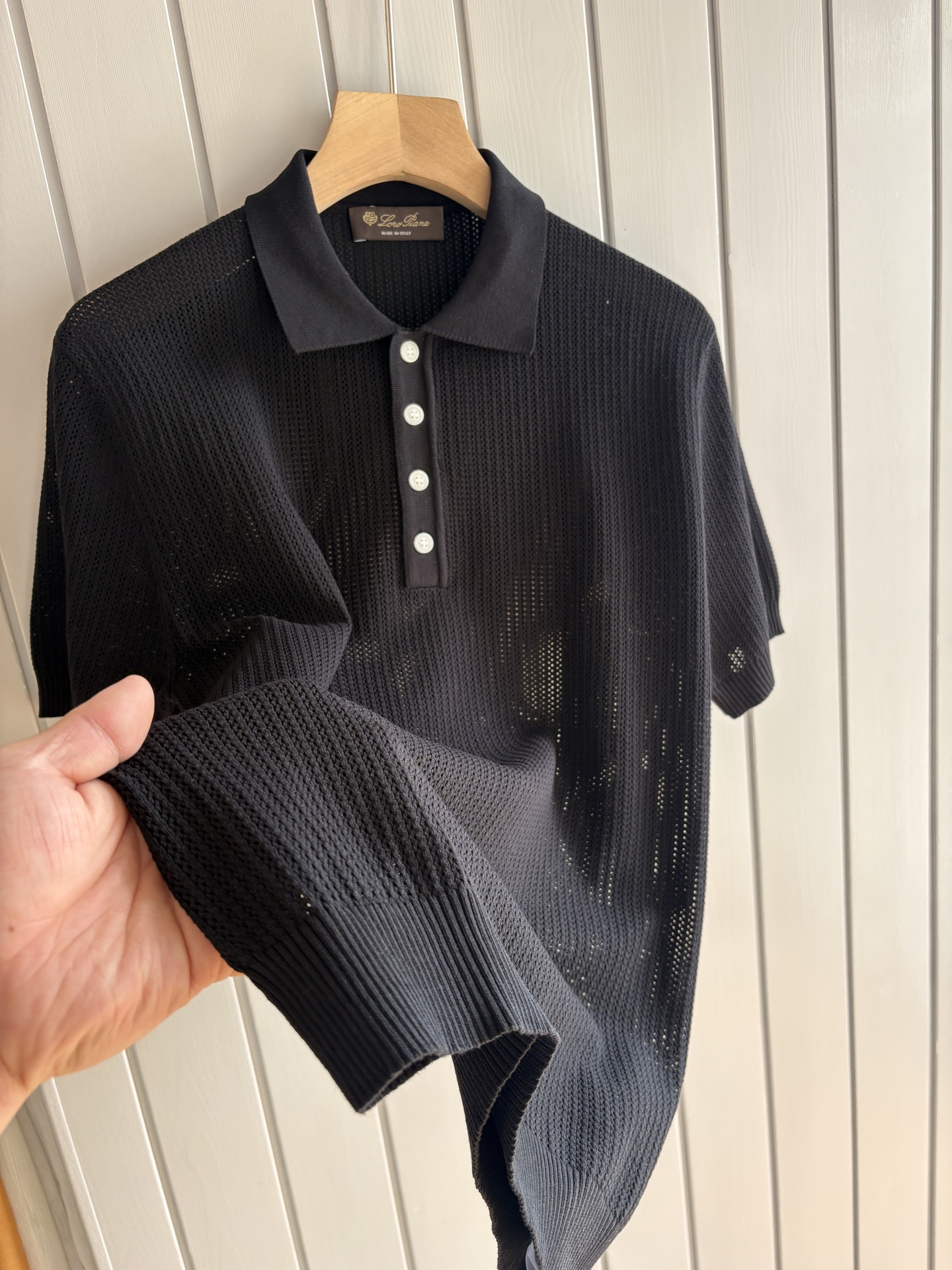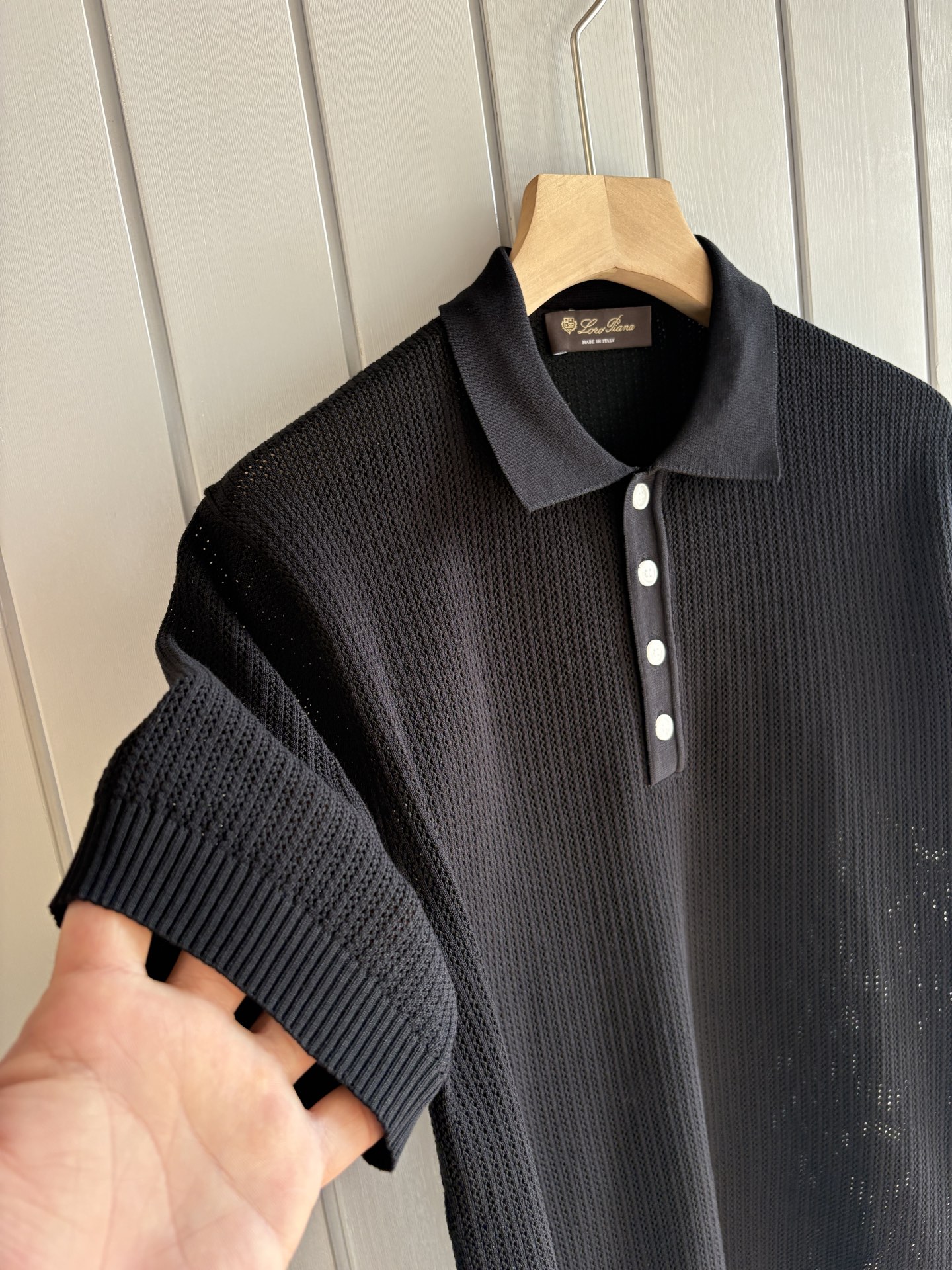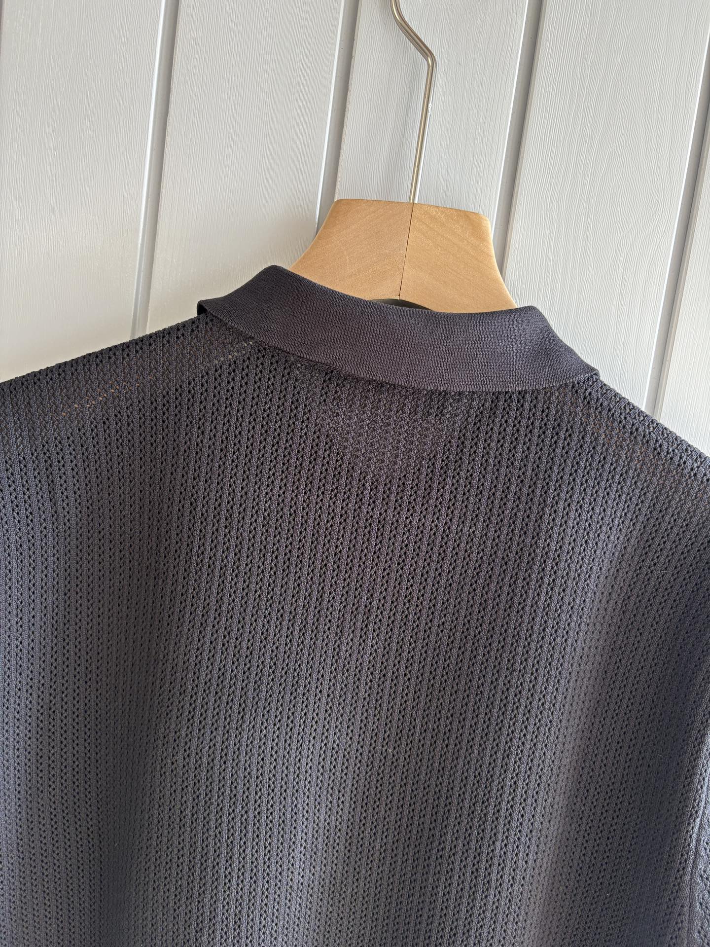 The "Time King" diamond-shaped jacquard design selects ultra-fine high-quality yarn, containing 20% goat and 80% mulberry silk. The lapel short-sleeved men's collector's edition "Time King" features a luxurious round collar and high-end craftsmanship that touches the skin. ? Craftsmanship heritage: diamond-shaped hollowed-out jacquard The three-dimensional diamond-shaped jacquard, which took several months to carve, weaves the architectural aesthetic texture between the warp and weft. When light and shadow penetrate, the interplay of visible and hidden elements exudes undersaid luxury in every move. ? Premium materials naturally formed: 20% cashmere + 80% mulberry silk Selected from ultra-fine and high-quality yarns, it combines the soft and skin-friendly texture of 20% Inner Mongolia white cashmere and the smooth and drape of 80% mulberry silk. It is as light as nothing yet exudes a natural sense of luxury. Wearing it close to the skin is like being gently caressed by the clouds. ? Classic style: Lapel short-sleeved design The simple lapel Outlines neat lines, and the short-sleeved cut is suitable for various scenarios - layering a suit over a business meeting shows elegance, and wearing it alone in casual times reveals a gentleman's taste. The classic style never fades. ? Perfection in details: A testament to quality Precision turning ensures smooth seams and reinforced bone positions that are resistant to wear and deformation. The thread at the neckline has undergone a water-washing test and remains as crisp as new even after long-term wear. Every detail is a testament to the "time spent". Code: M-3XL 001 001