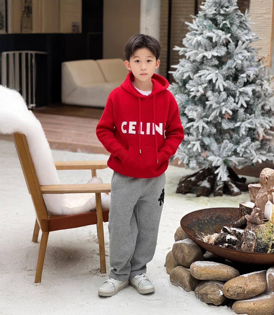 Celine, high-end children's clothing, sweaters for boys and girls, letter patchwork embroidery, simple, fashionable, laid-back and casual atmosphere, beautiful when worn alone, as an inner layer or layered. Made of Arctic fleece and wool blended yarn - soft and sticky, high-temperature and environmentally friendly dyeing - good density and flatness, with a small amount of nylon added - resilient and pilling for better durability. The washing process of the finished garment makes the hand feel softer, more comfortable and sticky. Sweater thickness: Weighing 550 grams, this is a must-have mixed and matched item for autumn and winter. It is both comfortable and good-looking to wear. Only available size: 100/110/140cm