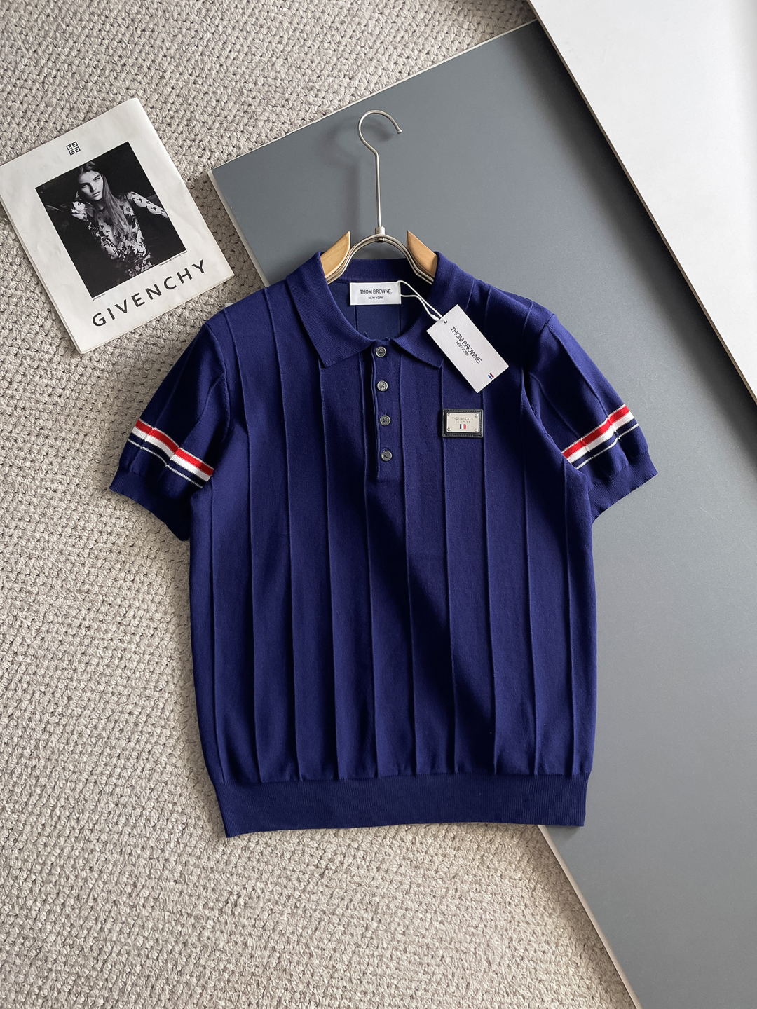 TB Spring/Summer 2025 new simple and versatile letter embroidered top-quality imported private knitwear polo short-sleeved shirt, high-end heavy industry jacquard short-sleeved knitwear. The counter style is fashionable yet luxurious, and the quality is beyond doubt. The wearing effect is excellent. The same size as the official website of luxury is M-xxxl