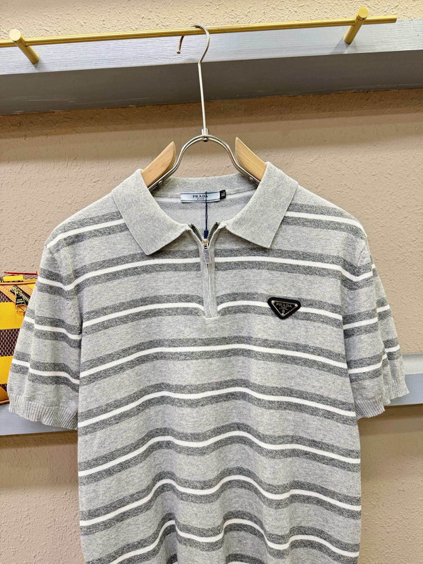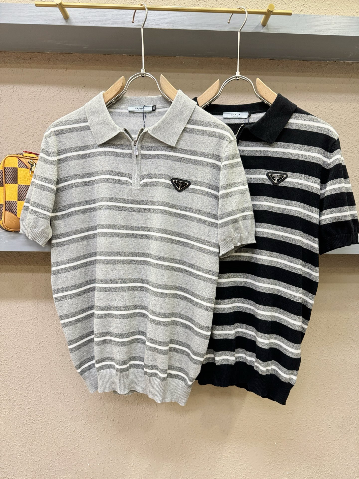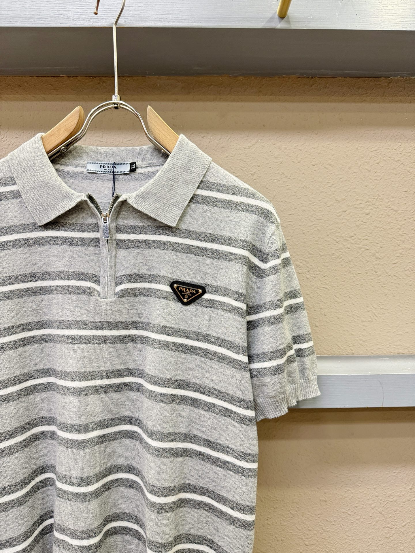 PRADA's Spring/Summer 2025 new knitted short-sleeved shirt, made of imported knitted fabric, has a soft touch. Top-quality imported private goods, fashionable design and trendy short-sleeved knitted sweater, without doubt luxurious quality. The wearing effect is excellent. The same style as the official website of luxury! Size: M-4XL
