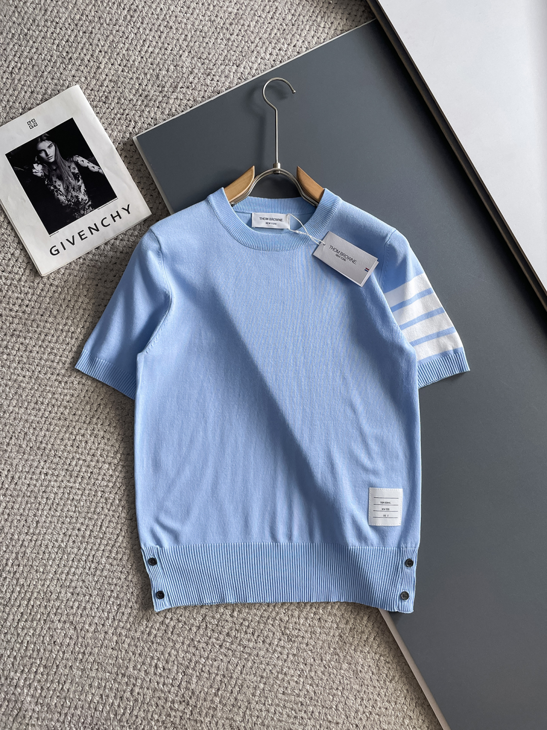 TB 2025 Early Spring counter new high-end elegant and fashionable men's custom top-of-the-line fashionable casual short-sleeved round-neck knitted sweater, a must-have item for high-end people. The original logo design makes it more luxurious and noble. The seamless perfect cut makes it comfortable, elegant and high-end to wear. The hand feel is very smooth and soft. It can be easily worn for business, fashion and casual wear, and the age range is very wide. In line with the practical dressing customs of men, the preferred size for urban seasoned fashionistas is M-3XL.