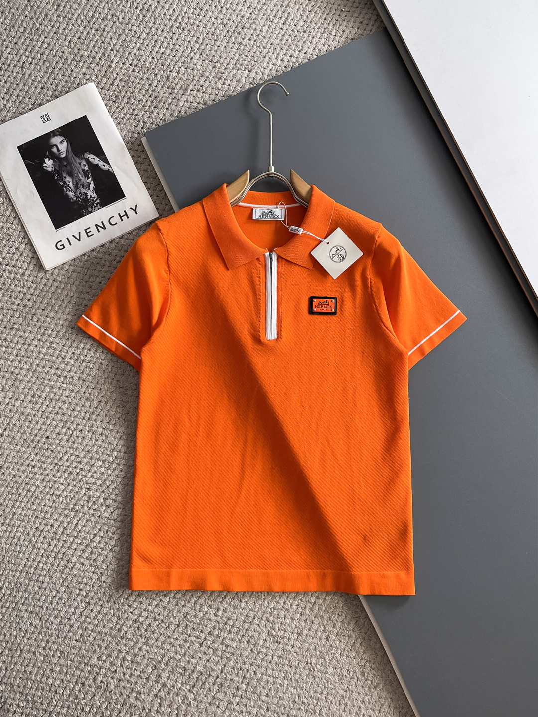Hermes' new Spring/Summer 2025 collection features a minimalist and versatile lettered top-quality imported private knitwear polo short-sleeved shirt. It is a high-end heavy industry jacquard short-sleeved knitted sweater. The counter style is fashionable yet luxurious, and the quality is beyond doubt. The wearing effect is excellent. The same size as the official website's counter is M-xxxl