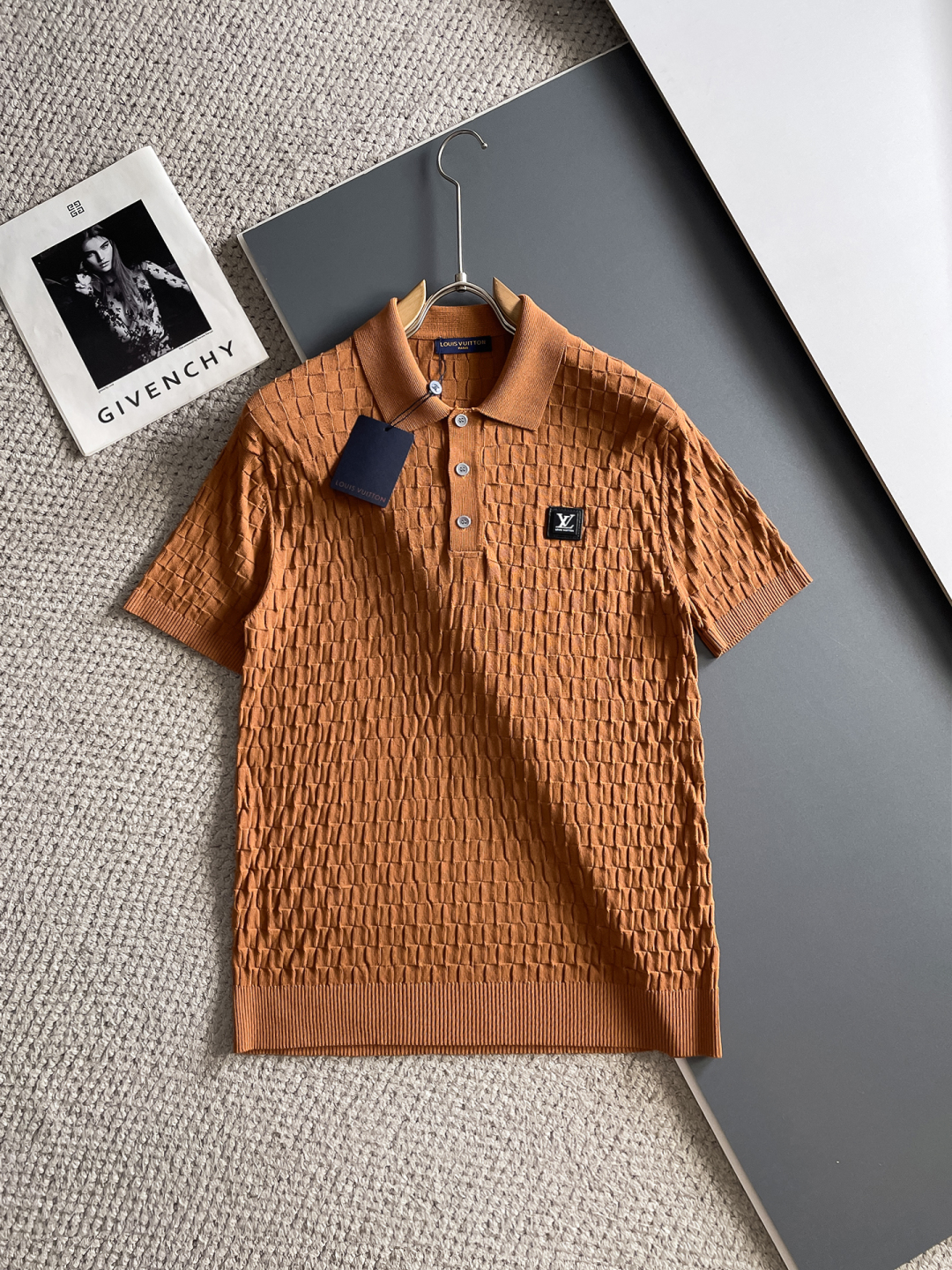 LV's new Spring/Summer 2025 collection features a simple and versatile design with lettered, top-quality imported private knitwear polo short-sleeved shirt. This high-end heavy jacquard short-sleeved knitted sweater is fashionable yet luxurious in the counter style. The quality is beyond doubt and the wearing effect is excellent. The same size as the official website's counter is M-xxxl