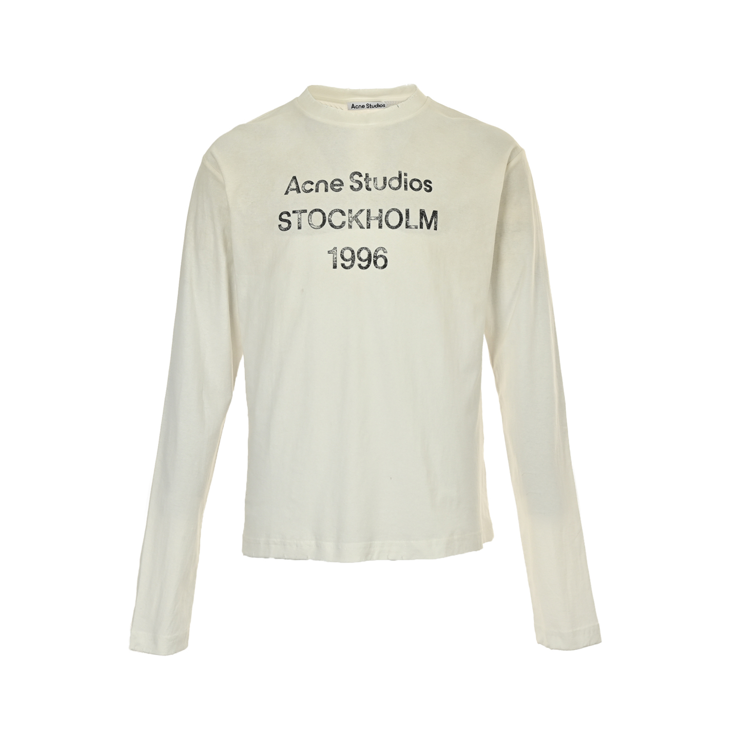 In-stock fine repair with year-round after-sales service Acne Studios 1996 lettered distressed long-sleeved T-shirt Acne's new 1996 series retro washed and worn vintage printed letter long-sleeved T-shirt is made of super soft bamboo cotton fabric with excellent breathability. After a washing process, the front part is made to look dirty, and the lower part presents a gradient effect, giving the garment a natural and slightly translucent retro aged style. The slightly worn collar, hem and cuffs are more in line with the overall tone The aged and cracked printed letters on the chest indicate the brand's headquarters location and the year of establishment. It has a very basic yet not monotonous design concept. It seems simple yet full of trendy and fashionable charm. The overall look continues the neutral atmosphere of ACNE. The loose wearing experience for both men and women is also very friendly to the figure. Whether worn alone or as an inner layer, it is very nice. A rare thin style for both men and women that won't make you feel warm in summer! Size:XS-L