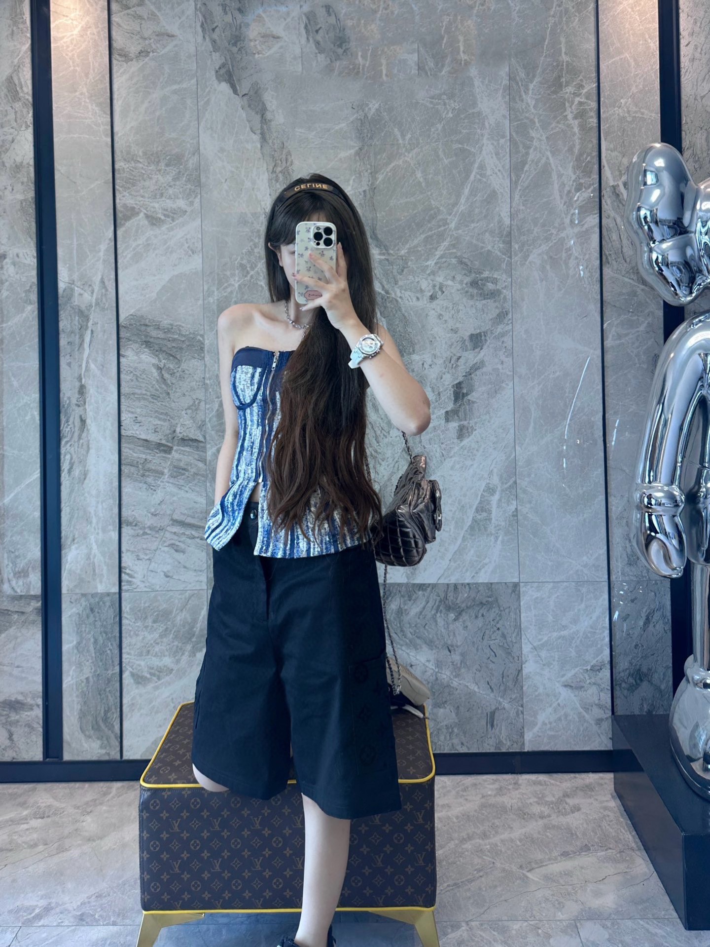 The wearing effect of the #Louis Vuitton 24ss pocket flocked patchwork shorts