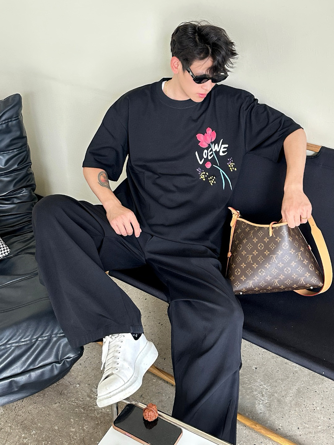 #Loewe/ LoeWE 25ss floral print short-sleeved top wearing effect