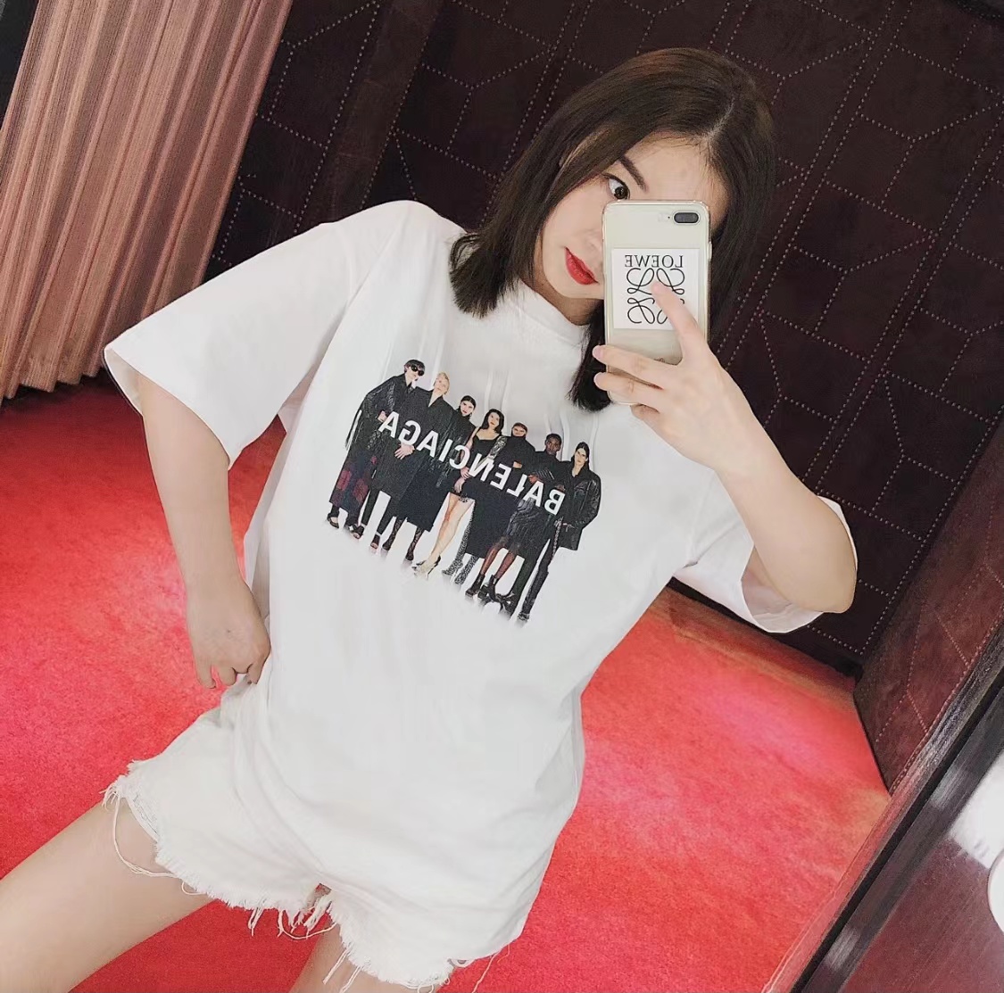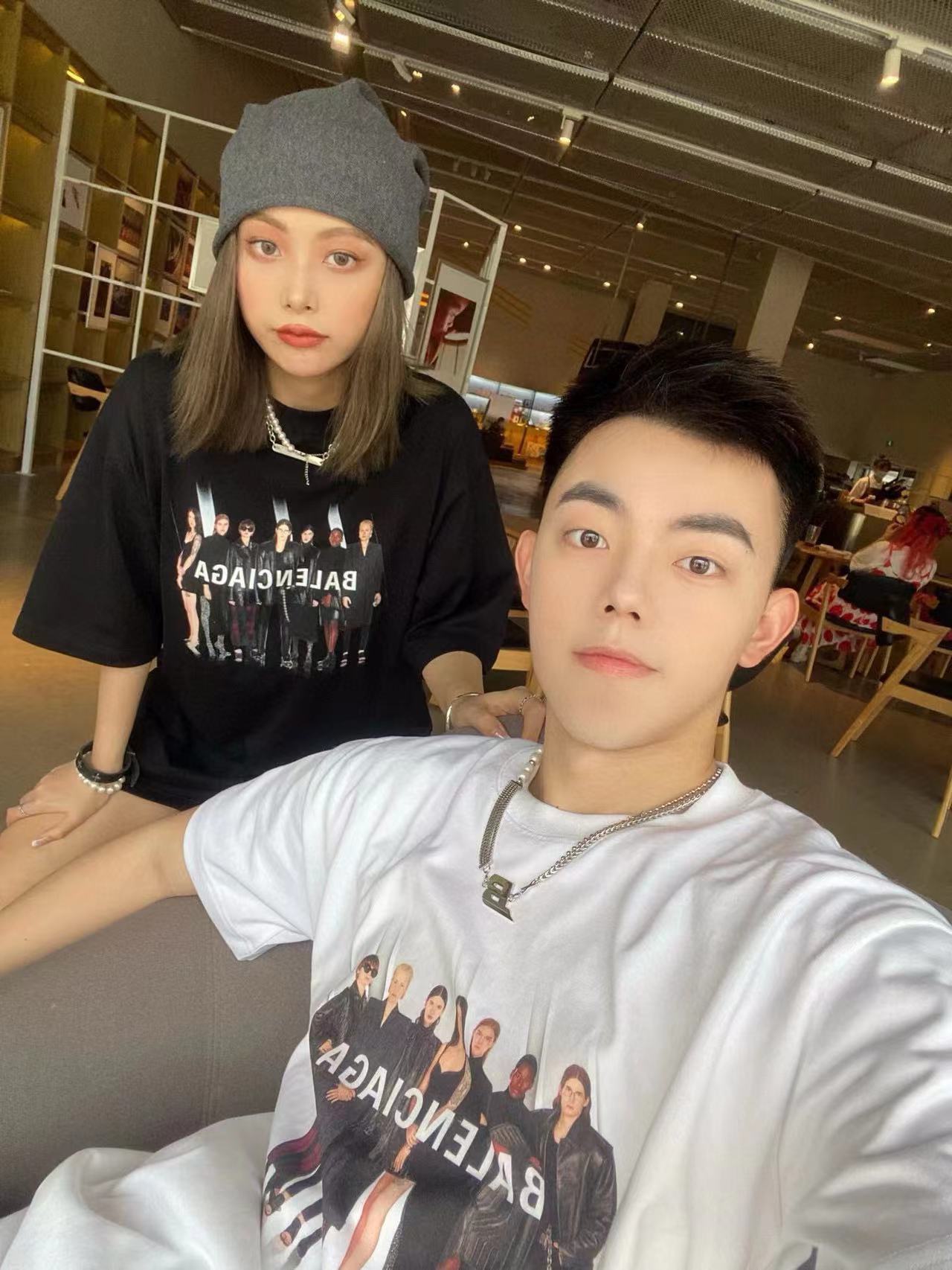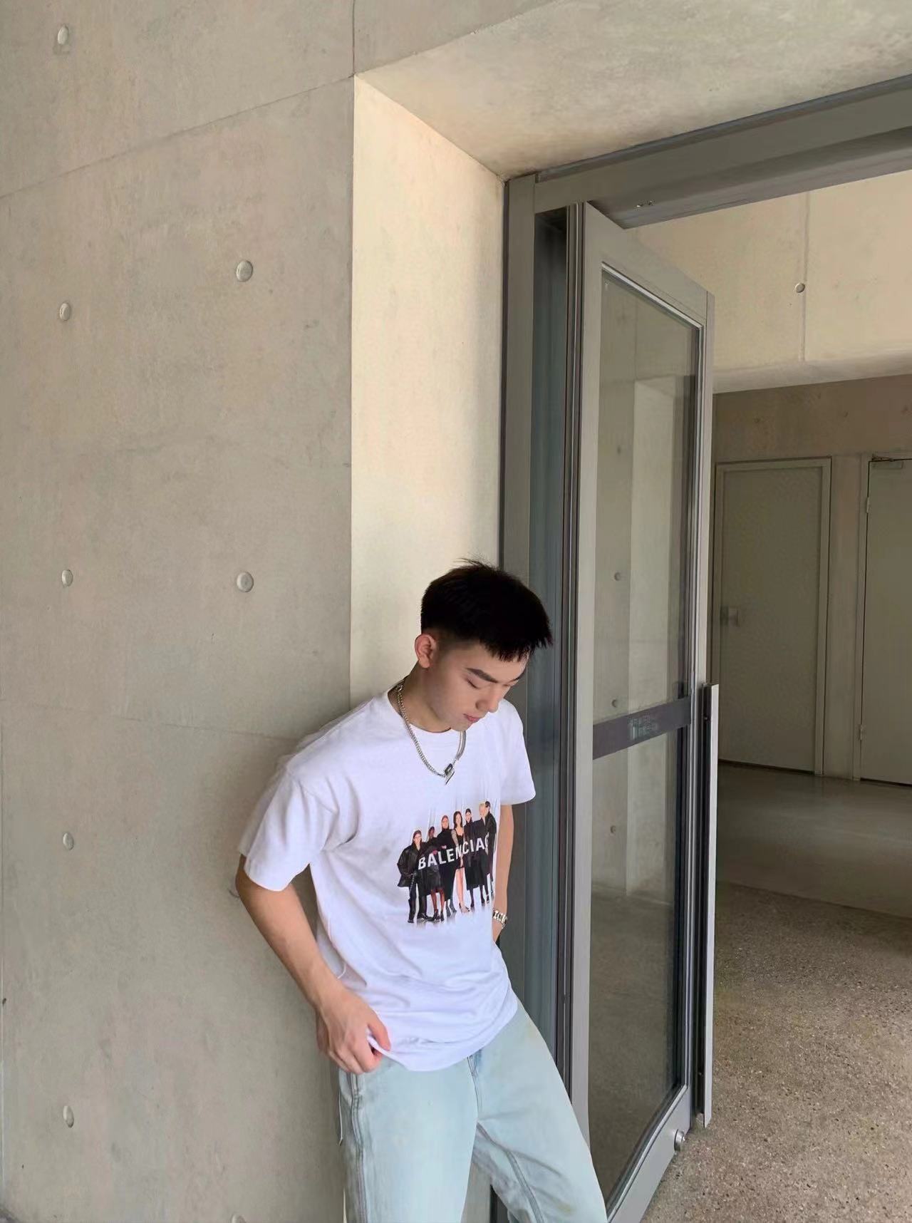 The effect of wearing Balenciaga All-Star portrait printed short-sleeved shirt