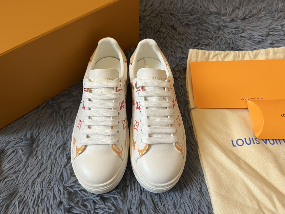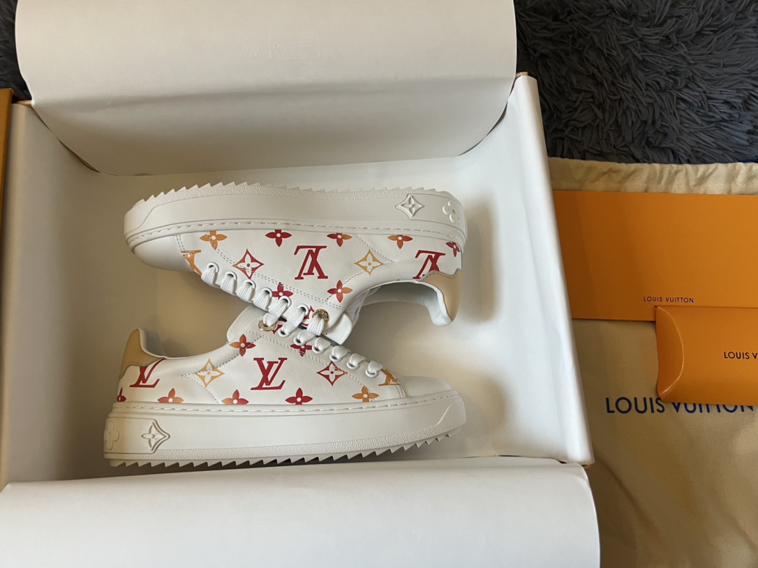 ???? Louis Vuitton Time Out 24 Spring/Summer new sneakers give sneakers ELEGANT and HIGH-END style Easy height increase simple and versatile selected calfskin material water-dyed sheepskin lining TPU outsole Size:35-41