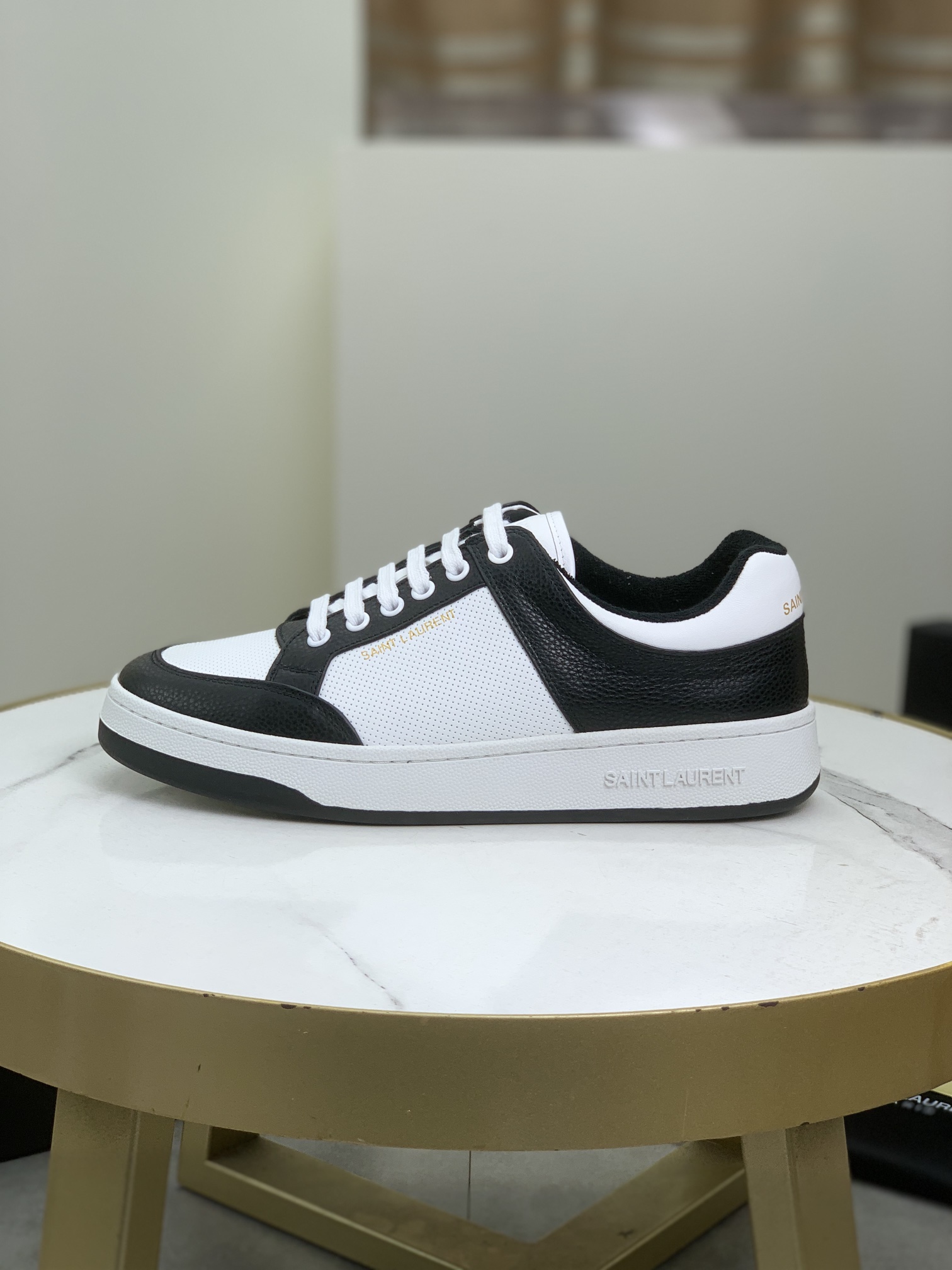 Model No. #3009?????? SAINT LAURENT low-top lace-up sneakers The new brand flagship store of S/L61 is now available on its official website. It features Italian original grain cowhide and front trim with perforated leather. The tie strap is decorated with the golden SAINT LAURENT logo. The side is decorated with the SL 61 logo, the back is embossed with the Saint Laurent logo, and the inner part is made of Tw soft towel fabric, which further enhances the softness, breathability and support of the shoes. There is no midsole last design, and memory insole insoles are added! The foot feel is incredibly comfortable and lightweight. The eco-friendly and anti-slip rubber two-tone outsole and the true stitching around the outsole further enhance the comfort and firmness of the entire pair of shoes. Perfection speaks for itself in the details! 5 ? Color available: Size :39-44 (custom-made for 38 and 45) Original box packaging + dust-proof bag